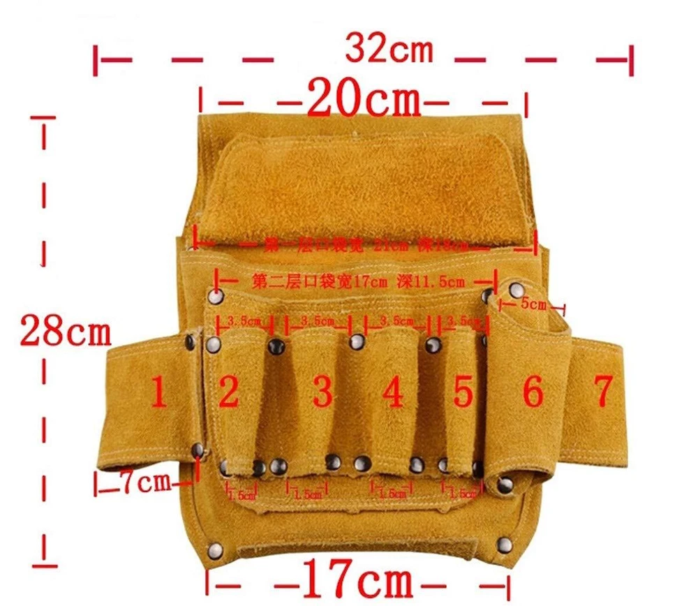 Suede Leather Tool Belt Pouch/Bag/Work Apron for Carpenters and Builders, Tool Holder & Adjustable Poly Web Belt for Tools, Flashlight, Keys etc. This tool belt provides convenient access to all your tools right on your waist! No longer will you need to take multiple trips to get tools, but carry them all at once now! Specifications: -We only use genuine suede, steel hammer loops and a military grade belt to make the best toolbelt for cunstomers! -Professional design system which aids effectiveness and ease of use which maximises productivity. Multiple large pockets/pouches for all the essentials -The adjustable belt comfortably fits Waist size: 24 inches to 46 inches. -Construction (9 Pocket Tool Belt):5 Pencil Pockets, 2 larger pockets for tools (such as pliers, screwdrivers, sockets, and wrenches), 2 steel hammerPockets. High Quality Material : This tool belt is made of heavy duty suede leather guarantee breathable, durable and won’t rip or tear . Convent Access:This tool pouch can hold a flashlight or large tool sleeve and electrical tape strap, plus carabiner for keys Large main pocket and smaller front pocket convenient access to parts or tools. Versatility: This professional tool pouch belt is perfect for multiple trades, tool bags for carpenter, electrician tool belt, framers tool belt, and also ideal for any task, drywall, roofing, flooring or even the general handyman doing some DIY. With the ability of adjusting the bag setup to your preference. Product Dimension: 12.6X3X11 inches (You are free to combine one or more tool belt), suitable for waist from 24 inches to 46 inches. Notice: This tool pouch belt does not contain tools. Shipping from the USA All of our products are shipped from the USA, ensuring quick delivery to your destination. Payment We offer the following payment methods: PayPal, credit card, bank transfer, and eBay's secure payment system. Free Shipping & Free Returns Shipping within the USA is FREE. Additionally, any return is absolutely free for you. Risk-Free Purchase You have the option to return an item within 30 days without any justification. We cover the return shipping costs! Fast Shipping We ship immediately upon receipt of payment. Generally, the package is delivered within 2-3 days in the USA. If it takes longer, we will contact you. Quality and Costs Made in Europe, USA, China No customs fees or additional charges Total satisfaction guarantee Invoice with declared VAT available upon request in .pdf format Feedback Your feedback is very important to us. After you pay for your purchase, you will automatically receive positive feedback from us.