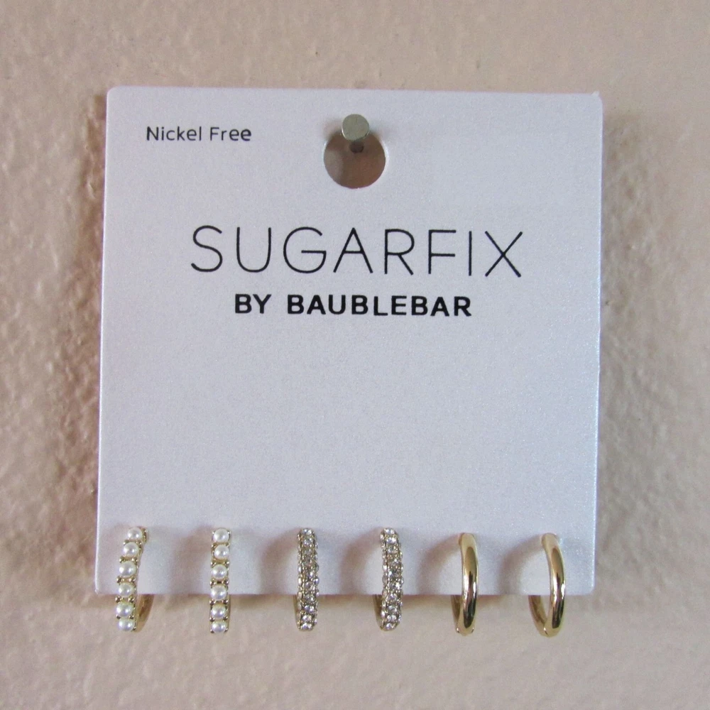 Brand new Sugarfix by Baublebar 3 Piece Earring set Crystal Gold & Pearl Hoop Earrings Nickel Free Color: Gold