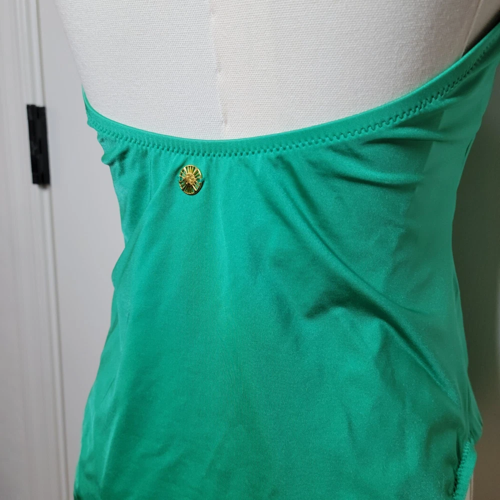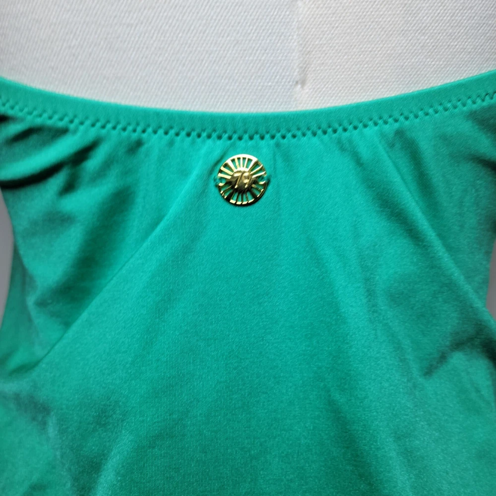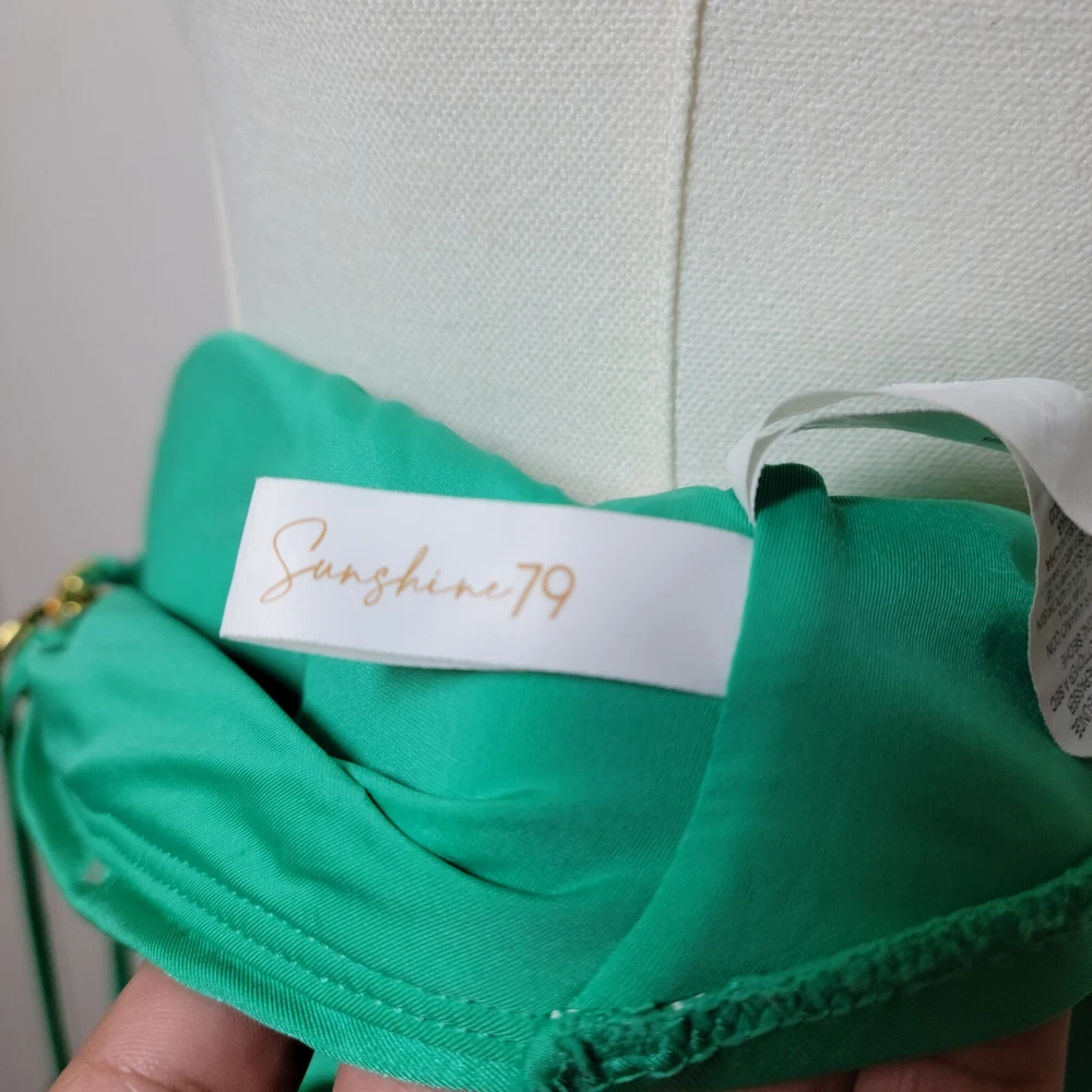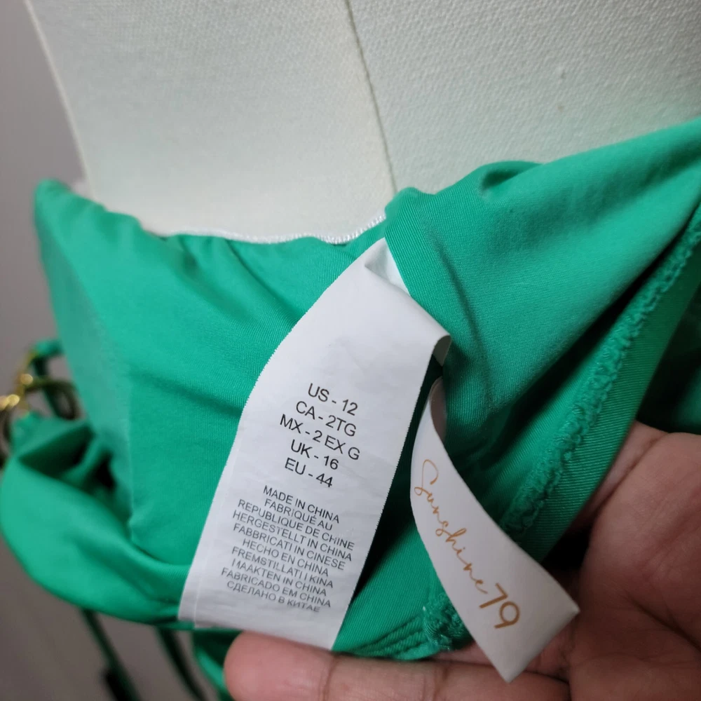 Sunshine 79 Gypset Solids High Neck One Piece Green Beach Swimsuit Size 12 Condition: New Without Tags Color: Seagreen (appears lighter in person) Measurements (from the website): Size: 12 Bust: 38.5" Underbust: 33" Waist: 30.5" Hip: 40" Torso: 67.5" Details: Make a statement with this Sunshine 79 Gypset Solids High Neck One Piece Swimsuit. The high neckline and chic silhouette are complemented by eye-catching gold circle jewelry details at the straps, adding an elevated and stylish touch. The seagreen color enhances the elegant vibe, perfect for both lounging by the pool and tropical getaways. Key Features: High neckline for a sleek, modest silhouette Gold circle jewelry accents for a touch of sophistication Soft, stretchy fabric for all-day comfort Full coverage bottom for added confidence Beautiful seagreen hue, ideal for summer and resort wear Pair with layered gold accessories and a straw tote bag for a polished, beach-ready look. --- Dreaming of desert vibes? 🌵Explore my closet for more boho treasures and unique finds!🤠 Hashtags: #Sunshine79Swimsuit #HighNeckOnePiece #SeagreenSwimsuit #GoldDetails #ChicSwimwear #BeachVibes #ResortStyle #SwimwearGoals #SummerFashion