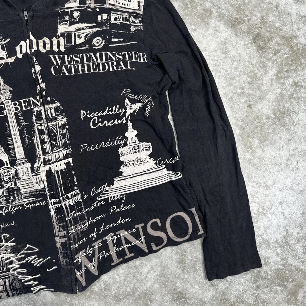 Suzie In The City Y2K Womens London England Hoodie Full Zip Grunge Size L