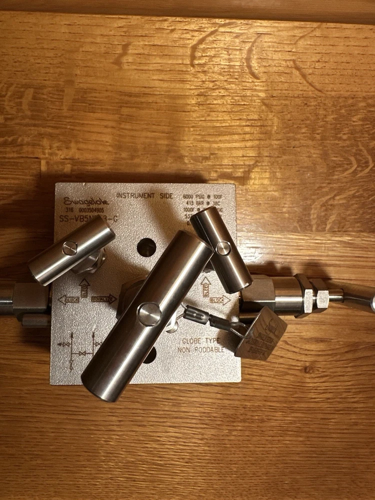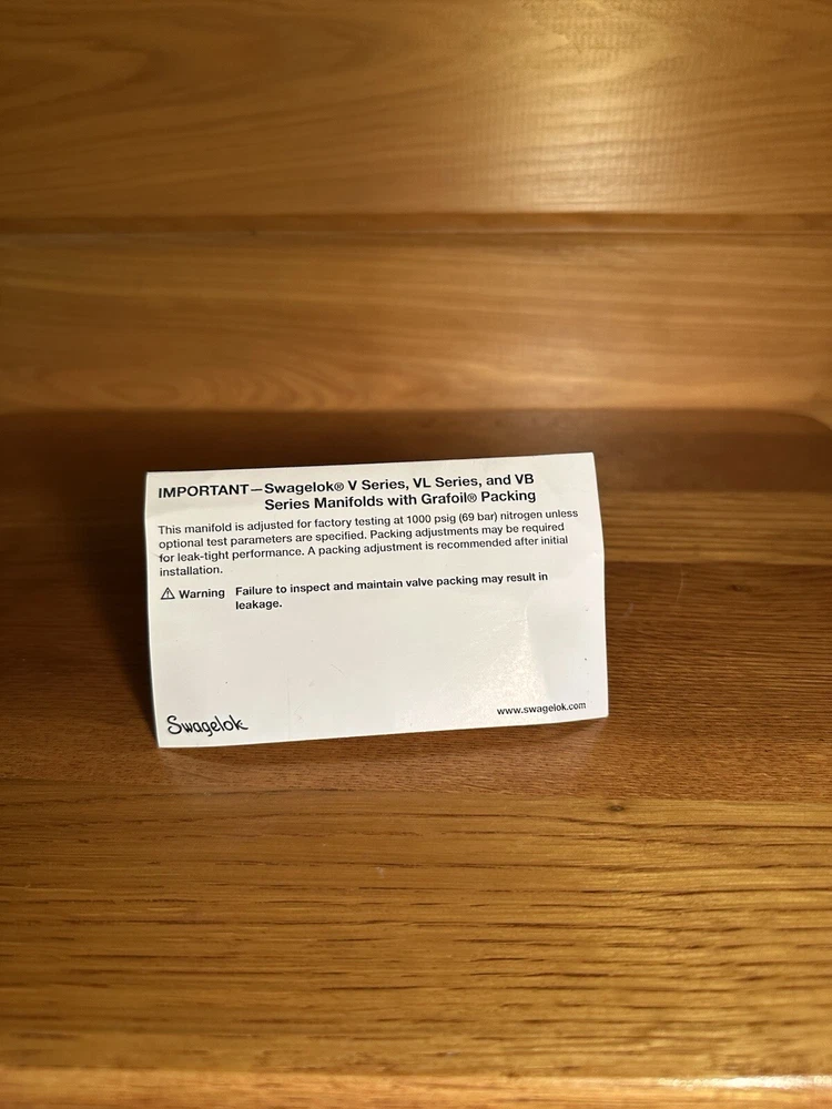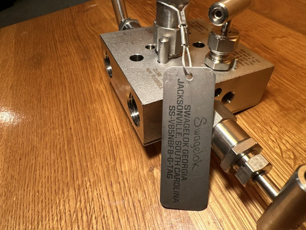 Swagelok SS-VB5NBF8-G Valve Instrument Manifold with Grafoil Packing Part: SS-VB5NBF8-G Description: Valve Instrument Manifold, 1/2” NPT F X 1/2” NPT F X 1/8” NPT F Bleed, ASTM A-479 or A-182 GR F316 MRR-21-06511 Class: D Brand New!