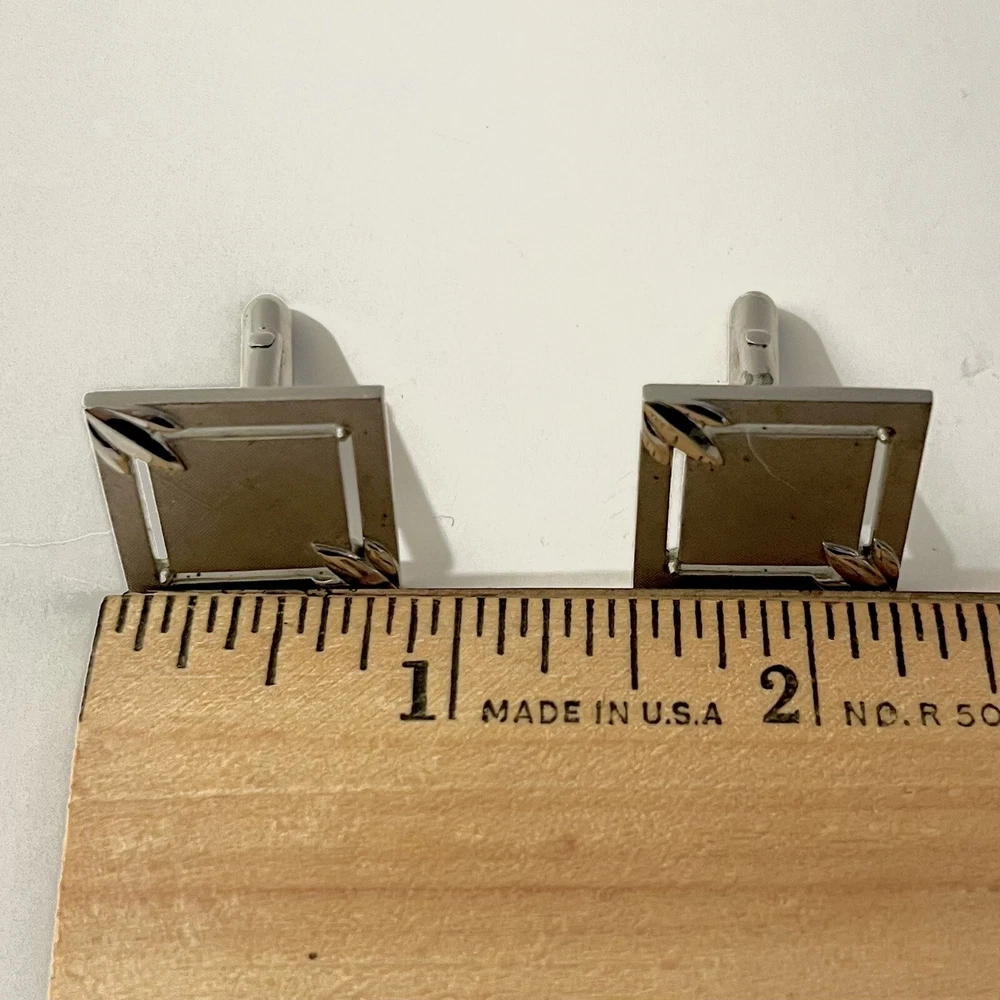 These vintage Swank cufflinks are a classic addition to any man's accessory collection. Made of durable stainless steel with a sleek silver tone, they feature a bullet back style for easy wear and signed for authenticity. These cufflinks are 3/4 inches in length and handcrafted in the United States. Perfect for a personalized touch, they can be a great gift for any man who appreciates timeless elegance. Size: 3/4” Condition: Great pre-owned, vintage condition.