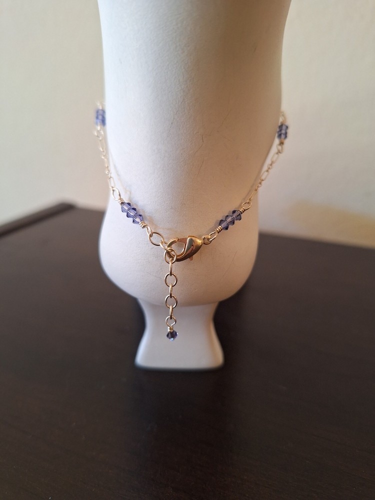 PURPLE LOVERS! This anklet is handmade with genuine Swarovski 3mm tanzanite diamond shape crystals in groups of 3 that go around the ankle with sterling silver decorative chain in between and includes a sturdy silver plated lobster claw clasp. Measures 10 inches total length but is adjustable down to 9 inches. Lightweight, Unique, Feminine & Comfortable ~ THE PHOTO DOESN'T DO IT JUSTICE! ALSO DOUBLES UP BEAUTIFULLY WITH OTHER ANKLETS. Please check out my many other anklets in crystal and semi-precious gemstones and my additional auction items. Yes I do combine shipping! First anklet is $ 5.75 ; each additional anklet is just .50 cents. Shipping fees reflect postage, paper, ink, tape, bubble mailer, bubble, wrap and gas to the post office. Always buy with confidence, check my feedback for assurance. ALL MY ANKLETS WILL COME IN A PRETTY ORGANZA POUCH!! ***PLEASE READ RETURN POLICY BEFORE PURCHASE. THANKS!