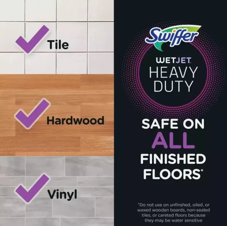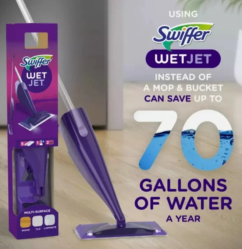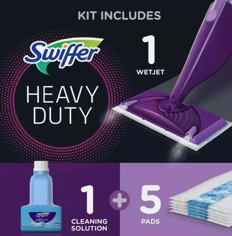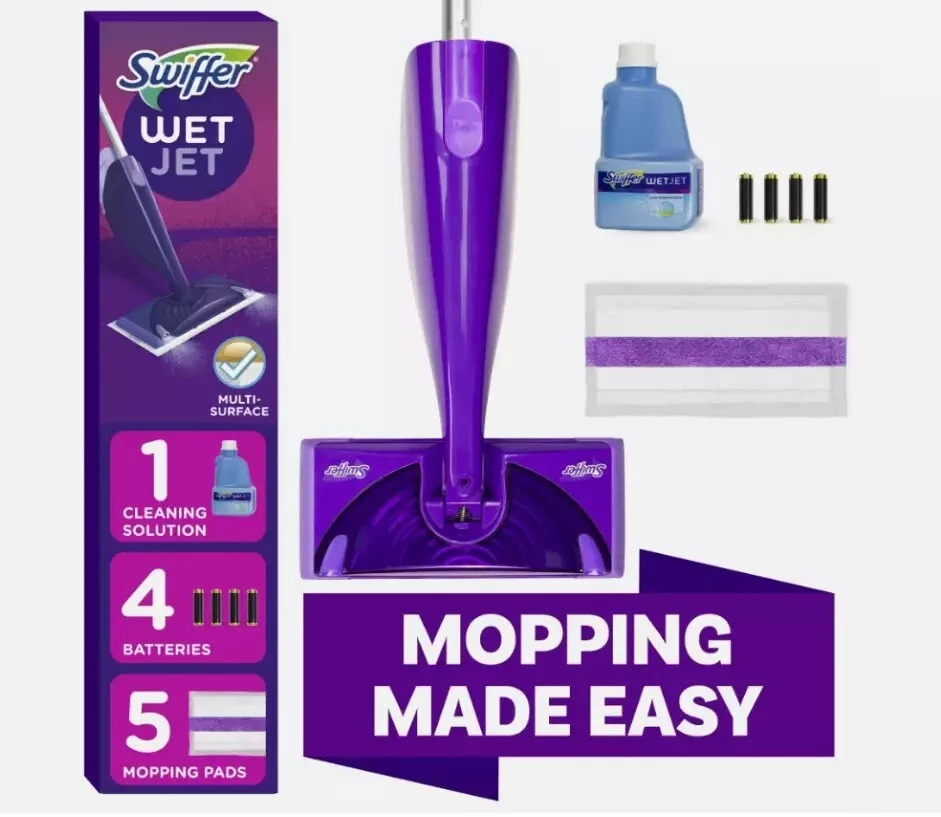 Swiffer WetJet Wood Starter Kit (1 Mop, 5 Pads, 1 Cleaning Solution) Swiffer WetJet Wood is an all-in-one spray mopping system that's ready to use right out of the closet. Start with a fresh pad and spray the cleaning solution through the uniquely designed, dual nozzled WetJet Wood spray mop head. Then watch the dirt and grime dissolve while the thick pad absorbs it deep inside so it doesn't get pushed around. Say goodbye to the hassle of your mop and bucket and enjoy the convenience of cleaning your finished hardood floors with Swiffer WetJet Wood! Swiffer WetJet Wood gives you the cleaning power of a mop with the convenience of a wipe. Easily get into tight spaces and clean your floors in minutes without the hassle of a mop and bucket WetJet Wood is safe to use on your sealed, finished hardwood floors The powerful WetJet Wood cleaning solution dissolves dirt and grime while the thick pad absorbs it deep inside, so it doesn't get pushed around Assembly is easy! After connecting the handle, just insert the batteries, load the cleaning solution, pop on a fresh pad (strip down), and you're ready to clean! It's that easy Did you know your mop head could be filled with bacteria? With WetJet Wood, skip the bacteria and start with a fresh, clean pad every time WetJet Wood is truly scent-sational! The specially scented formula cleans your finished hardwood floors to reveal their natural beauty while awakening your senses Swiffer WetJet Wood is compact, lightweight, and easy to store. So, it's always ready to tackle messes right away Buy Swiffer WetJet Wood worry-free. If you're not completely satisfied, check out our money-back guarantee RETURNS and CANCELATION: If the item is not what you ordered (or defect) simply contact us within 5 days of receiving your item. We will send you a new item free of charge, or if you want a refund, your refund will be made. THANK YOU FOR YOUR ORDER!!!