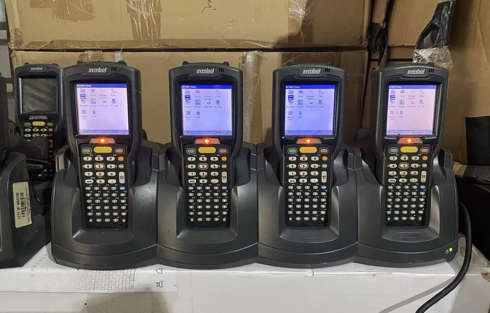 The Symbol MC3090G-LC48HB0GER is a mobile computer/barcode scanner gun set that comes with a 4-way cradle for easy charging and storage. This device, known for its Symbol brand, offers wireless connectivity, making it suitable for retail and business environments where mobility is essential. The model MC3090-LC48HB0GER is designed for efficient barcode scanning and data collection tasks, providing convenience and accuracy in point-of-sale and inventory management operations.