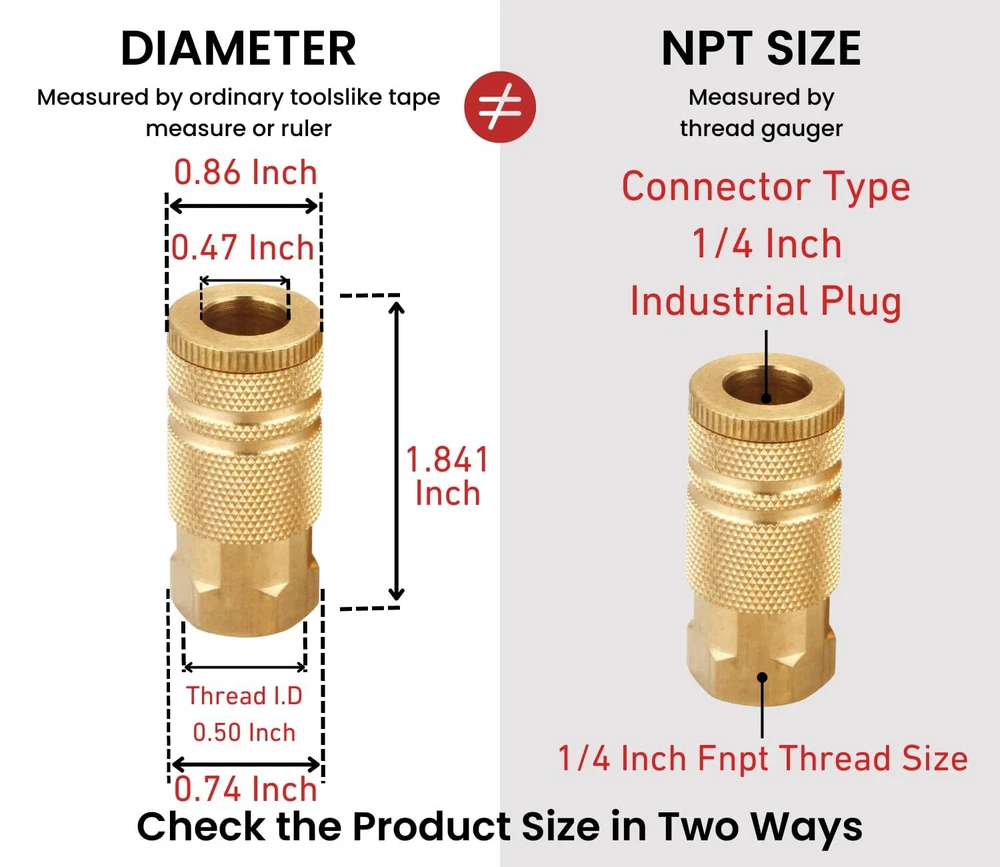 T TANYA HARDWARE Air Hose Fittings Quick Connect Brass Air Coupler and Plug Kit, Industrial Type D, 1/4 Inch NPT Air Compressor Fittings, (7 Piece) Industrial Type: Suitable for Industrial, M or D type couplers, interchangeable compatible with most manufacturers, 1/4 Inch NPT, 4 Ball Material: High quality brass durable and non rusting is more wear resistant than aluminum Application: Use on professional jobsites, in automotive shops or at home in the garage, and common use to air fitting kit for air tools, air compressor, air nailer, air blow gun, pressure washer, air hose Size: Quick and easy connect system, optimal sealing and high efficiency,1/4 npt thread, 1/4 inch basic body size Max Pressure: 300 psi Industrial Type: Suitable for Industrial, M or D type couplers, interchangeable compatible with most manufacturers, 1/4 Inch NPT, 4 Ball Material: High quality brass durable and non rusting is more wear resistant than aluminum Application: Use on professional jobsites, in automotive shops or at home in the garage, and common use to air fitting kit for air tools, air compressor, air nailer, air blow gun, pressure washer, air hose Size: Quick and easy connect system, optimal sealing and high efficiency,1/4 npt thread, 1/4 inch basic body size Max Pressure: 300 psi Shipping from the USA All of our products are shipped from the USA, ensuring quick delivery to your destination. Payment We offer the following payment methods: PayPal, credit card, bank transfer, and eBay's secure payment system. Free Shipping & Free Returns Shipping within the USA is FREE. Additionally, any return is absolutely free for you. Risk-Free Purchase You have the option to return an item within 30 days without any justification. We cover the return shipping costs! Fast Shipping We ship immediately upon receipt of payment. Generally, the package is delivered within 2-3 days in the USA. If it takes longer, we will contact you. Quality and Costs Made in Europe, USA, China No customs fees or additional charges Total satisfaction guarantee Invoice with declared VAT available upon request in .pdf format Feedback Your feedback is very important to us. After you pay for your purchase, you will automatically receive positive feedback from us.