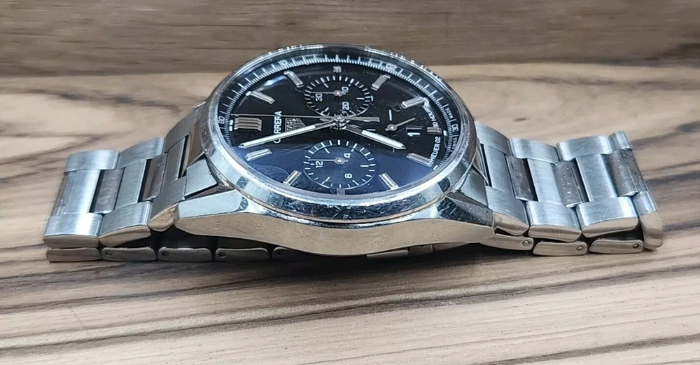 TAG Heuer Carrera Chronograph 42mm Heuer 2 Black Dial 80 Hours Men Watch. Used Condition. It has several scuffs on the watch. Band Size 7.25 or 7.50. Please view pictures to avoid returns. Thank you. ITEM111524PO1250.