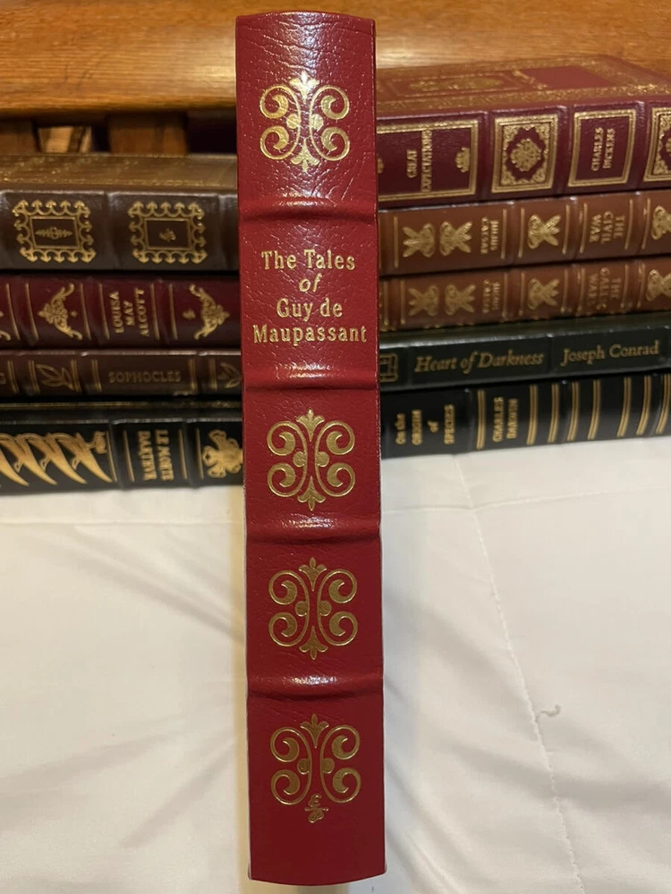 TALES OF GUY DE MAUPASSANT Easton Press 1977 Hardcover Leather Ed 100 Greatest Books New Mint THE TALES OF GUY DE MAUPASSANT by Guy De Maupassant Easton Press © 1977 From the 100 Greatest Books Ever Written Series Guy de Maupassant was a 19th-century French author who wrote over 300 short stories and six novels. He is widely regarded as one of the greatest masters of the short story form and a representative of the Naturalist school of literature. Collector's Edition Genuine Leather Bound Hardcover Mint Condition, never read, bookmark is in original position and fold! Printed and bound in the United States I am helping liquidate an estate for a friend. Her husband was an avid collector of books. I have hundreds to list, many rare and hard to find books. Please check back often as I will be listing new ones every day. Feel free to ask if you are looking for anything in particular. I will be listing many Folio Society books as well as the entire collection from the 100 Greatest Books ever written by Easton Press. Please email me with any questions. I will respond back quickly. I describe item conditions to the best of my ability and will always point out any flaws or defects that I am aware of. I am an EBay Seller with 100% Positive Feedback! Thank you. Bid with Confidence! See my other listings for more great items! Because I have had a slew of non paying and very slow paying bidders lately I will require payment within 2 days of the end of auction. However, if you need a different arrangement I will be more than happy to work with you, just let me know. INTERNATIONAL BUYERS ARE RESPONSIBLE FOR ALL CUSTOMS CHARGES, PORT CHARGES OR ANY TAXES DUE UPON RECEIPT OF THEIR PACKAGE. All my shipping charges include delivery confirmation. International shipping will be at actual cost. Thank you for bidding on my auctions. Your business is very much appreciated! txzj pxzj7585 txzj-11 txzj111 txzj115