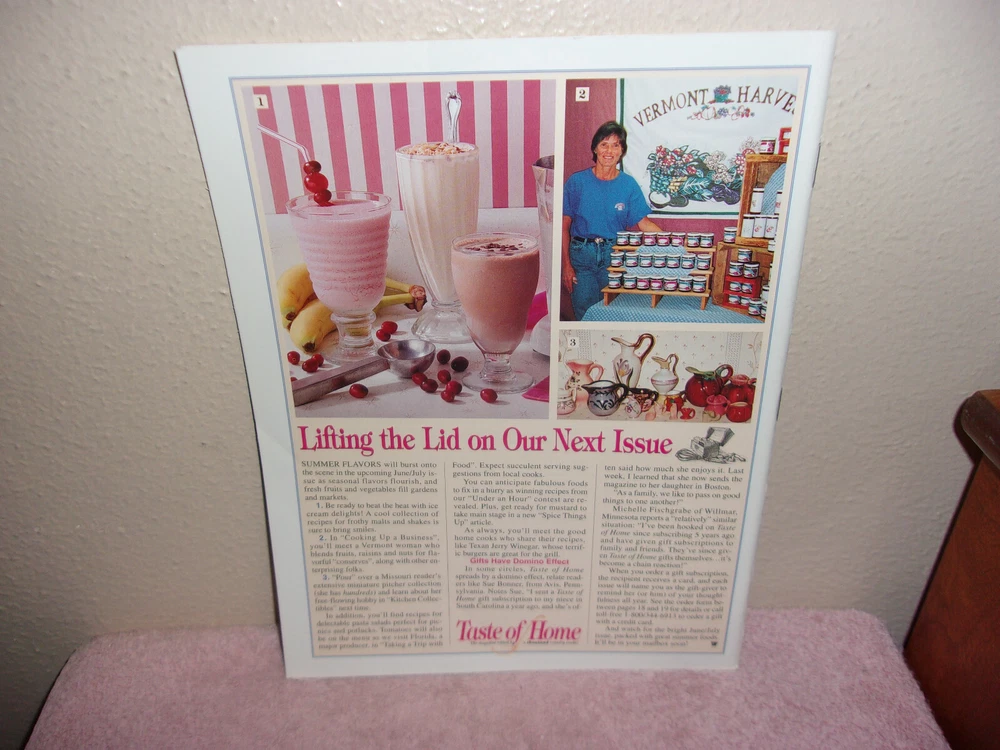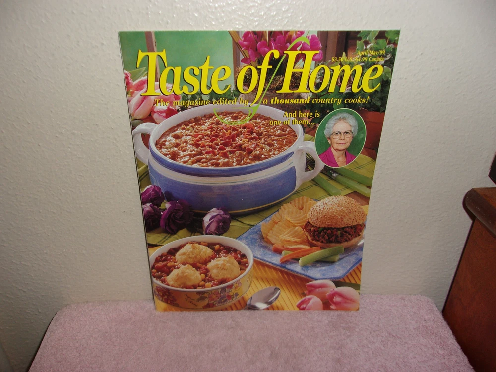 UP FOR SALE TODAY IS A LIKE NEW APRIL / MAY, 1999 BACK ISSUE OF "TASTE OF HOME " MONTHLY MAGAZINE.....SHOWS ALMOST NO SIGNS OF USE.....SEE PHOTO'S......>>>>>PRICED TO SELL<<<<<.....THANKS FOR STOPPING........(N-B)