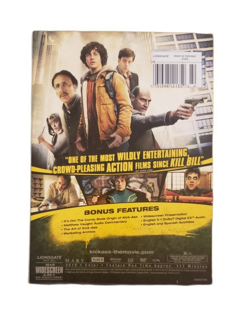 TESTED Kick-Ass DVD Nicolas Cage Chloe Grace Moretz ACTION SUPER HEROES. Tested and plays great - artwork & case included, light shelf wear consistent with storage. Shipped USPS Media Mail