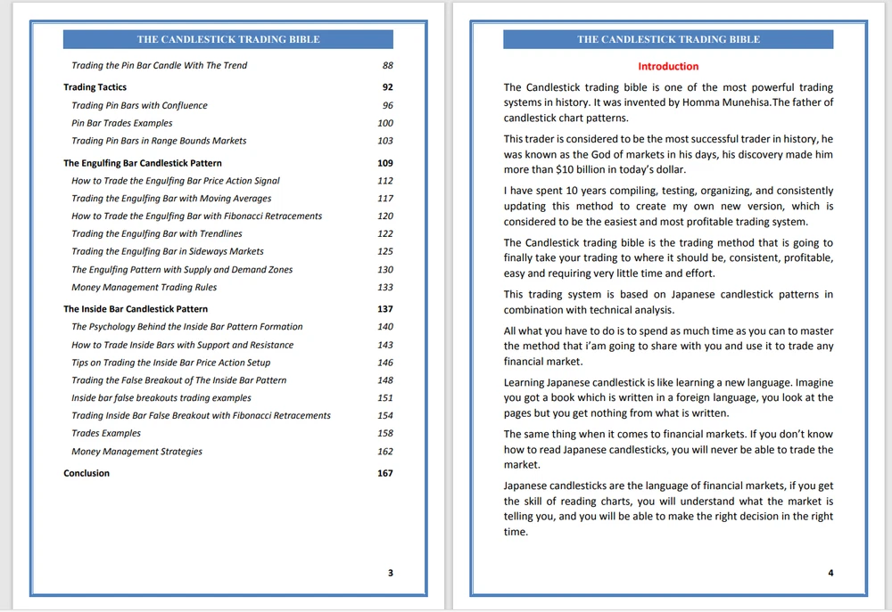 --- Contact seller before your purchase --- One of the most effective trading methods in history is the Candlestick Trading Bible. Homma Munehisa was the one who created it. candlestick chart patterns' creator. This trader, who was once referred to as the "God of Markets," is regarded as the most prosperous trader in history. Thanks to his discovery, he amassed more than $10 billion in today's money. I spent ten years compiling, organizing, testing, and updating this strategy to develop my new version, which is regarded as the simplest and most successful trading system. The trading strategy that will finally get your trading to where it should be—consistently lucrative, simple, and need minimal time and effort—is the Candlestick trading bible. This trading strategy is based on technical analysis and Japanese candlestick patterns. To trade any financial market, all you need to do is devote as much time as you can to mastering the strategy I'll be sharing with you. Japanese candlestick instruction is similar to learning a new language. Imagine you have a book written in a foreign language. You glance over the pages, but you understand nothing. Likewise with regard to financial markets. You won't ever be able to trade the market if you don't know how to read Japanese candlesticks. Japanese candlesticks are the language of the financial markets; if you can read charts, you will be able to understand what the market is trying to tell you and be able to act accordingly.