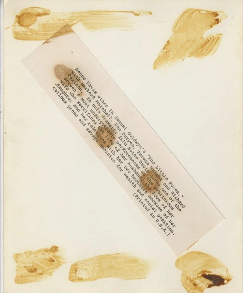 "THE LITTLE FOXES"-ORIGINAL PHOTO-BETTE DAVIS-PORTRAIT ON BANNISTER-SNIPE "THE LITTLE FOXES"-ORIGINAL PHOTO-BETTE DAVIS-PORTRAIT ON BANNISTER-SNIPE Click image to enlarge Description WELCOME TO THE FANG'S LAIR. ALL ITEMS ARE ORIGINAL PIECES OF MOVIE MEMORABILIA. NO REPROS, RESTRIKES OR DUPES . PLEASE CHECK OUT EBAY EACH WEEK FOR NEW ITEMS UP FOR SALE. ALWAYS A GREAT CHANCE TO PICK UP SOME VINTAGE HOLLYWOOD STILLS REASONABLY! ALL AT REASONABLE PRICES! ALL ITEMS GUARANTEED ORIGINAL! FAIR POSTAGE! VINTAGE ORIGINAL 8" X 10" SILVER GELATIN PHOTOGRAPH "THE LITTLE FOXES" VERY GOOD+ THIS IS AN ORIGINAL STILL PHOTO CREATED TO PROMOTE THE FILM/STAR AT TIME OF ISSUE I SHIP THE NEXT BUSINESS DAY. PLEASE DON'T ASK ME TO HOLD SHIPMENTS. I TRY TO PRICE EVERYTHING VERY COMPETITIVE. OFTEN IT IS CHEAPER TO BUY ORIGINAL MATERIAL THAN BUYING RE-STRIKES OR REPRODUCTIONS. POSTAGE IS NOT NEGOTIABLE. PLEASE DO NO ASK. Pictures sell! Auctiva offers Free Image Hosting and Editing. Showcase your items with Auctiva's Listing Templates! Attention Sellers - Get Templates Image Hosting, Scheduling at Auctiva.com. Track Page Views With Auctiva's Counter