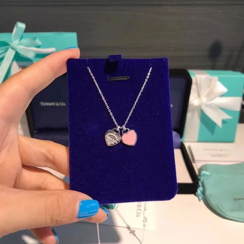 TIFFANY & CO Pink Enamel Returns Tiffany Mini Double Heart Necklace 925 Silver Size: 16 inches Brand New with Box If you have any questions, please contact me. I am here Not satisfy ? 100 % Money back We will ship within 3 working days Because the delivery time of the goods is 7-10 days Before the goods arrive please wait patiently Thank you!