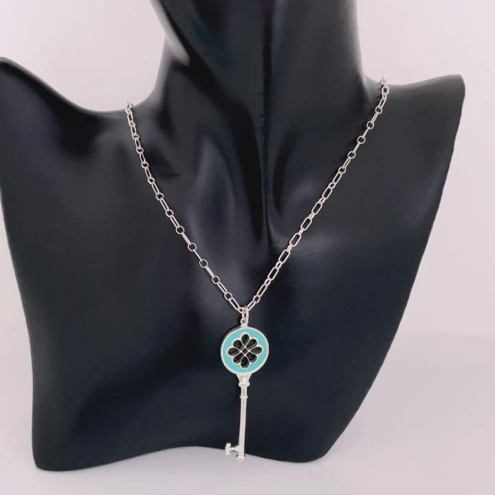 TIFFANY & Co. Tiffany Blue Key Oval Ring Chain Necklace USED