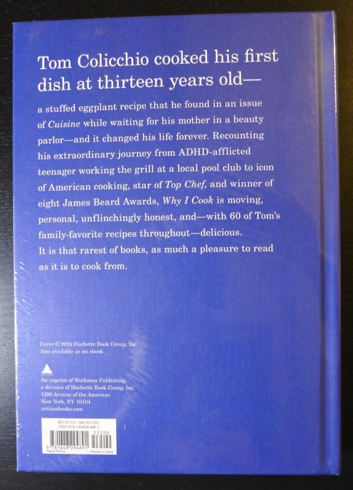 YOU RECEIVE A TOM COLICCHIO / TOP CHEF- AUTOGRAPHED "WHY I COOK" NEW SEALED SIGNED COOKBOOK MEMIOR 2024