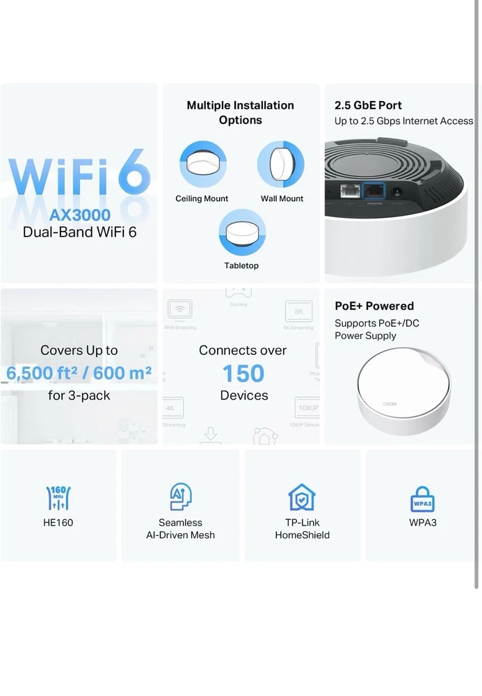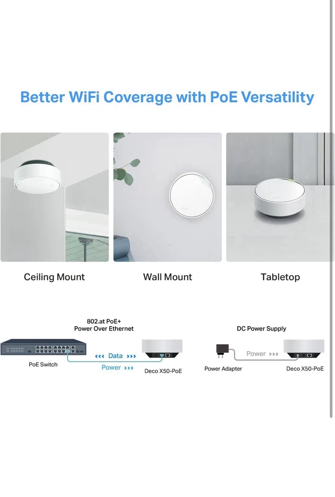 TP-Link Deco AX3000 PoE Mesh WiFi(Deco X50-PoE), Ceiling/Wall-Mountable WiFi 6