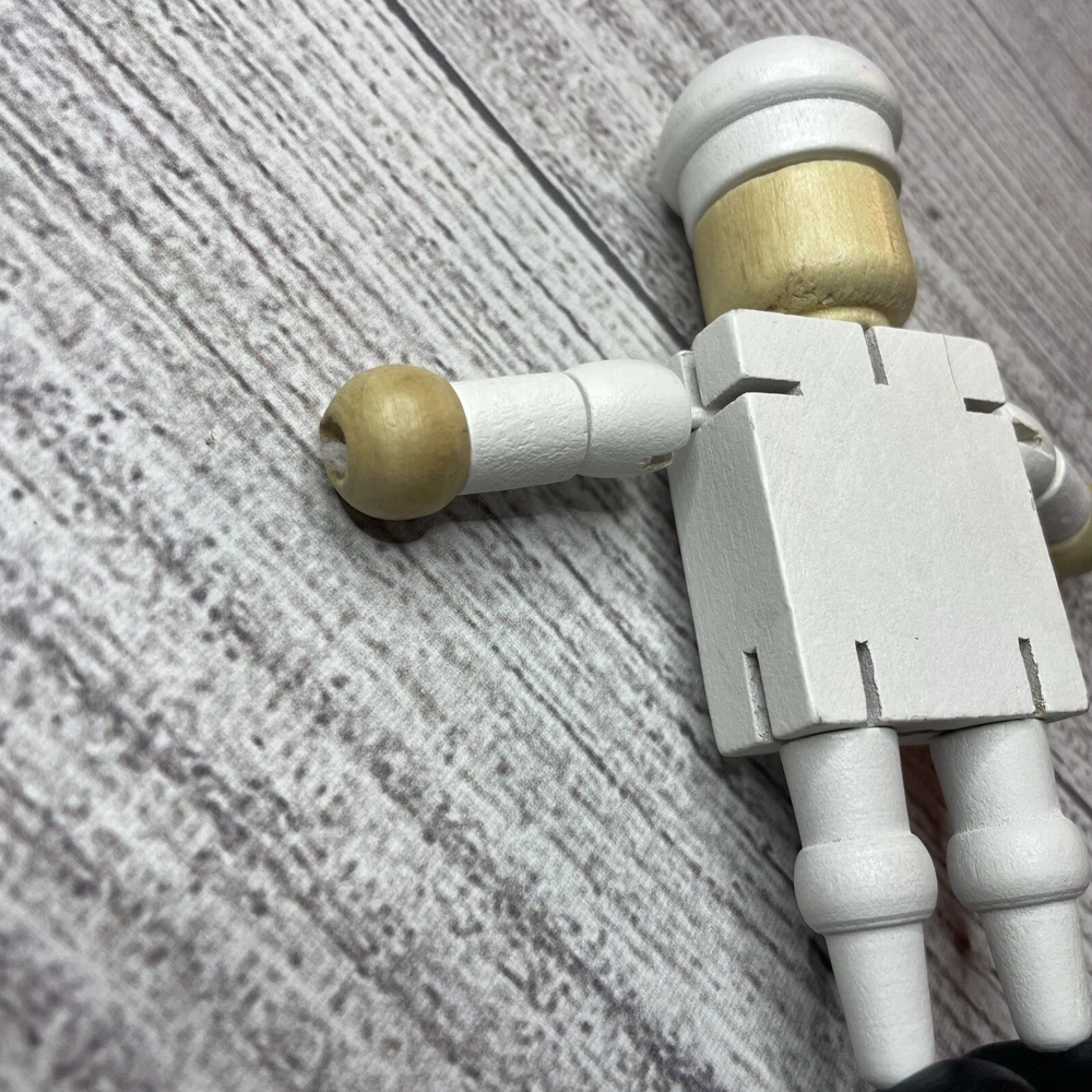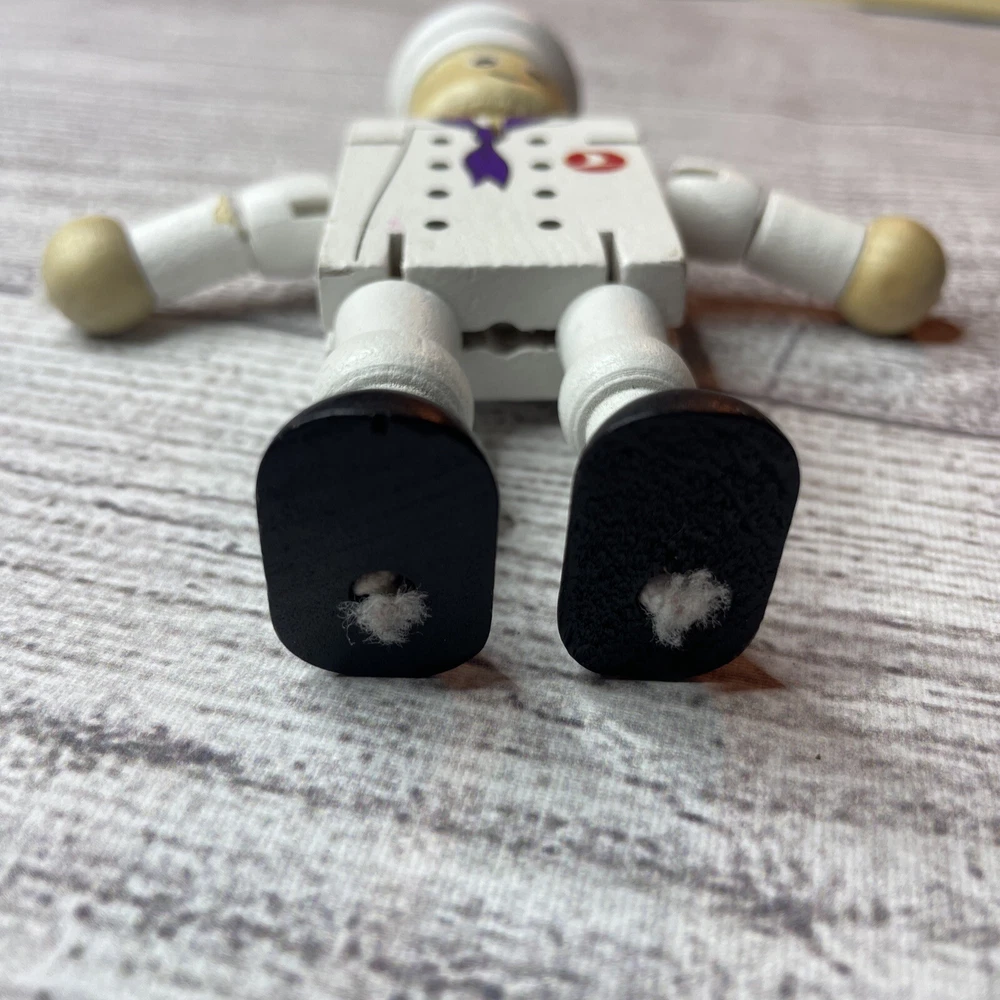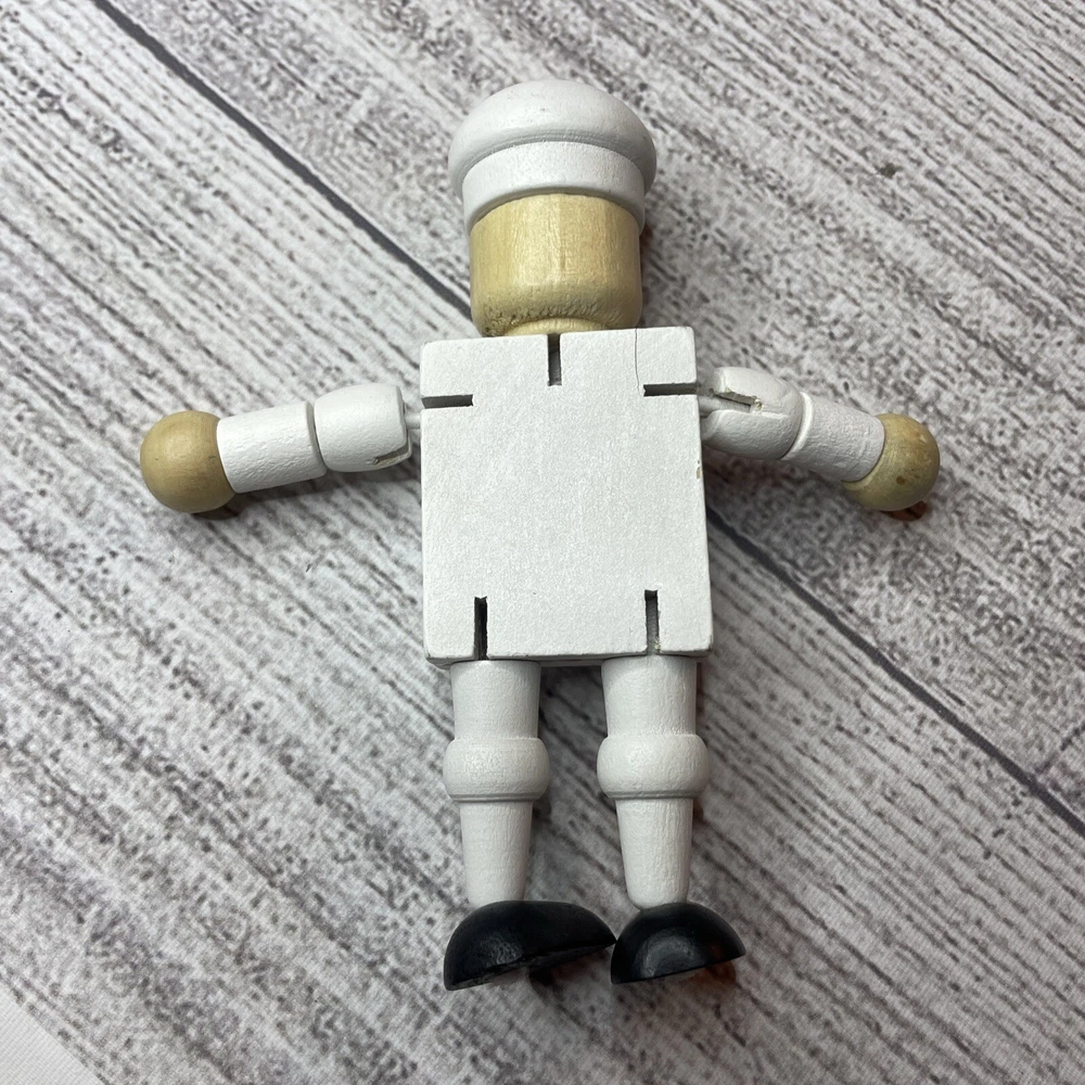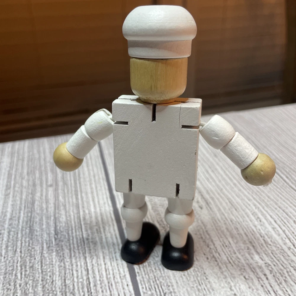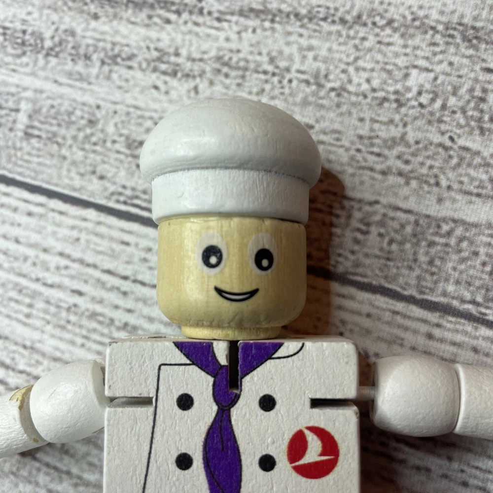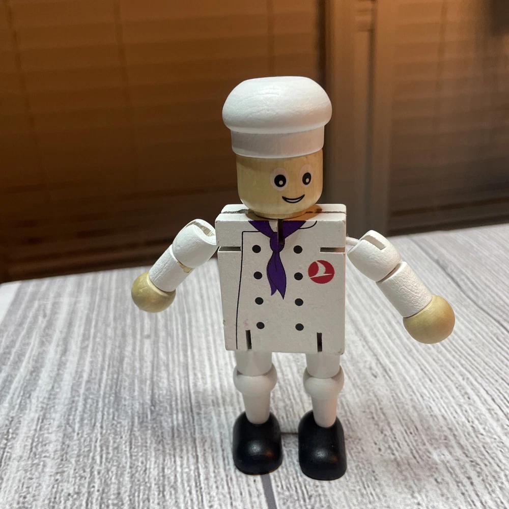 TURKISH AIRLINES SMALL WOODEN TOY DOLL COOK WITH MOVABLE ARMS & LEGS Approximately 4.5" Tall Good pre-owned condition. Does have some wear/chipped paint. Paint on body. Please see all pictures and measurements for most accurate description.