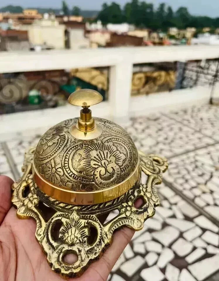 Table Desk Bell Antique Vintage Brass Hotel Service Ornate Reception Counter Details - 🔔MATERIAL :- Brass 🔔SIZE :- 3.6 inch | Weight: 0.200 kg 🔔IDEAL TOOLS FOR ATTENTION :- Super Practical For The Elderly Or Bedridden People To Ask For Assistance, For Training Pets, For Gathering Kids To Play Games, Or For Teachers To Get Attention. This Design Is Easy For Both Kids And Adults To Use, Allowing The Bell To Be Used In A Wide Range Of Circumstances. 🔔CAN BE USED :- In Halls, Malls, Church, Restaurant, Hotel, Stores, Service Bell, Teacher Bell, Decoration Bell, Call Bell For The Elderly To Ask For Help, Lunch Bell To Call Kids, Great Tool For Kids To Play Games And So On. Good For Desk Kitchen Hotel Counter Reception Restaurant Bar Schools Hospitals Warehouses Classroom Front Desk. 🔔HOW TO USE: - Push Down With Your Palm or One Finger to Make It Ringing, You Can Get Other’s Attention. Ring The Bell For Assistance, Good For Classroom Office Reception Hotel Restaurant Use. Antique Brass Ornate Hotel Front Desk Bell Vintage Sale Service Counter BelL A Fine quality Handmade Item.100% Hand Crafted in India. A reproduction Shipping : All ordered items shipped within 3-4 working days after receiving payment confirmation through PayPal. We use reputed couriers to ship our shipments like FedEx, DHL, TNT or EMS. Tracking number will be provided after dispatching the parcels . * Normal delivery time is 8-12 working days from the time of item dispatch. Please note, delivery time can take more time in some different transit conditions like custom clearance, lack of proper address, address change or some other reasons - Contact Us : If you have any query or problem then feel free to contact us through eBay Message system Or Click on "Ask a Seller" tab below each listing. We reply within 24 hours. Import Duties or Taxes : Please Note Import Duties taxes, Vat, quarantine fees, address change fees, or any other taxes are not included in the item price or in shipping charges. These charges are the buyer's responsibility. You are requested to please check with your country's custom office to determine what these additional cost or taxes etc before bidding / buying this item(s) Feedback : If you feel any problem in product please immediately contact us as we ensure fast and best solution for any problem got in our product !! SPECIAL DISCOUNT FOR WHOLESALE & BULK INQUIRIES !! Thanks for Visiting