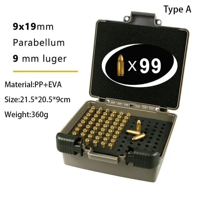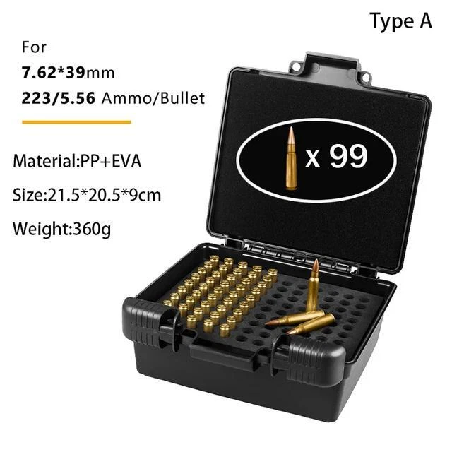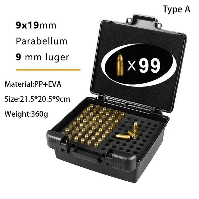 FREE SHIPPING 30 DAYS RETURN EASY PAYMENT .223 7.62x39 9mm Ammo Box 99/50 Rounds Bullets Case Pistol Rifle Ammunition Hold About 99 Rounds(high quality) Material:PP+EVA Size:21.5*20.5*9cm Weight :370g Feature: 1.2 lockable holes can be used to lock the box, increasing safety. 2. Large capacity, capable of storing up to 99 bullets; Provide additional protection and organization for your ammunition, making it easy to carry, small in size, and lightweight. Very suitable for outdoor activities such as shooting, hunting, etc. 3. PP material, suitable for any adventurous personal protective practical box! Anti impact, anti compression, dustproof, waterproof. 4.Suitable for 9x19mm Parabellum/9mm luger;Suitable for 7.62*39mm,.223/5.56 rifle bullets. 5.Attention: This product is shipped with only empty boxes and EVA lining! Excluding pistols, magazines, bullets, and other accessories. Package includes: 1x Tactical Bullet Box with EVA Foam (The bullets are not included) Notice: 1. Due to the different monitor and light effect, the actual color of the item might be slightly different from the color showed on the pictures. 2. Please allow 1-2cm measuring deviation due to manual measurement. About 50 Rounds Material: plastic Size: 9mm 50 rounds:11.5x6.5x3.5cm .223 50 rounds :12.5x7.5x7cm Weight: 9mm 50 rounds:60g; .223 50 rounds :116g. Package includes:1x plastic Bullet Box(The bullets are not included) About 99 Rounds(high quality) 9mm:.223 About 50 Rounds Shipping We are always trying to guarantee that your package arrives as quickly as possible. Please keep in mind that some conditions, such as weather, excessive postal traffic, and shipping company performance, are beyond our control. Domestic purchases are normally shipped within 3 business days of receipt of payment (excluding holidays). P.O. Boxes are not accepted. Please provide a physical address in your message.International purchases are normally shipped within 3 business days of receipt of payment (excluding holidays).We will offer you with a tracking number so that you can make an informed decision. Please contact us to calculate shipping rates for countries that do not list shipping alternatives. Returns If you are unhappy with your purchase, you have the option to return it for a full refund. Within three days of receiving the goods, you must notify us of the problem. Before returning the item, please contact us for a return mailing address. Do these steps before opening a case on ebay. All things must be returned in their original condition, without being broken or changed. You must also provide us with your shipping tracking information, and we will provide a refund within three business days of receiving the returned item. The buyer is responsible for the cost of return shipping. Payments Kindly Ensure that your address on eBay is matched with your shipping address before you pay. Import duties, value added taxes and any other charges are NOT included in the item price or shipping costs unless otherwise stated. You are responsible for any reasonable tax or any other importation fees. WE ACCEPT ALL PAYMENTS MANAGED BY EBAY REVIEWS The product came very well packaged. I'm very happy. thank you for everything. Seller strongly recommended. This is great! I definitely recommend! Product looks amazing Delivery was fast. Excellent seller, great communication. I advise everyone