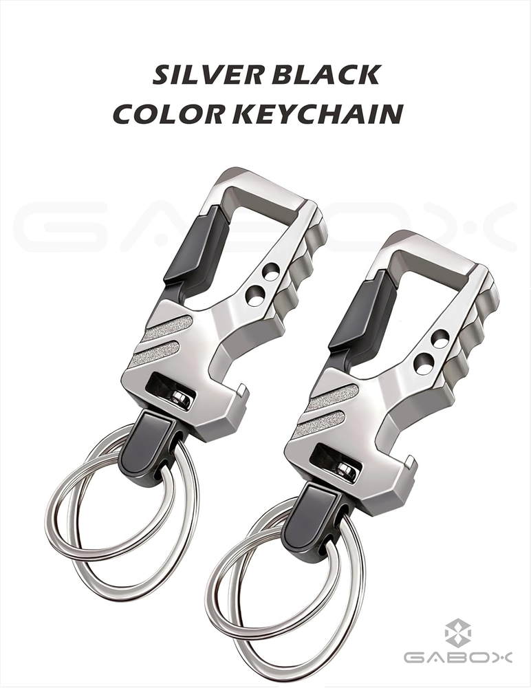 Product Description Classic Design Meets Business Occasions The unique design of heavy duty carabiner fit for men, women, friends and parents . Large hook for quick and easy access on any loops, jeans and backpack Bottle Opener Keychain for Beer & Coke Designed carabiner with versatility make the keychains can be used to quickly open the bottle cap if you want to drinking beer anywhere and anytime Premium Car Keys Keychains The color of the metal is perfectly coordinated with the car key . With complete functions GABOX keychains make all your keys organized and pockets free from clusters
