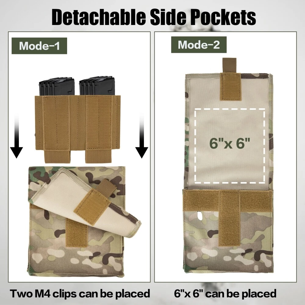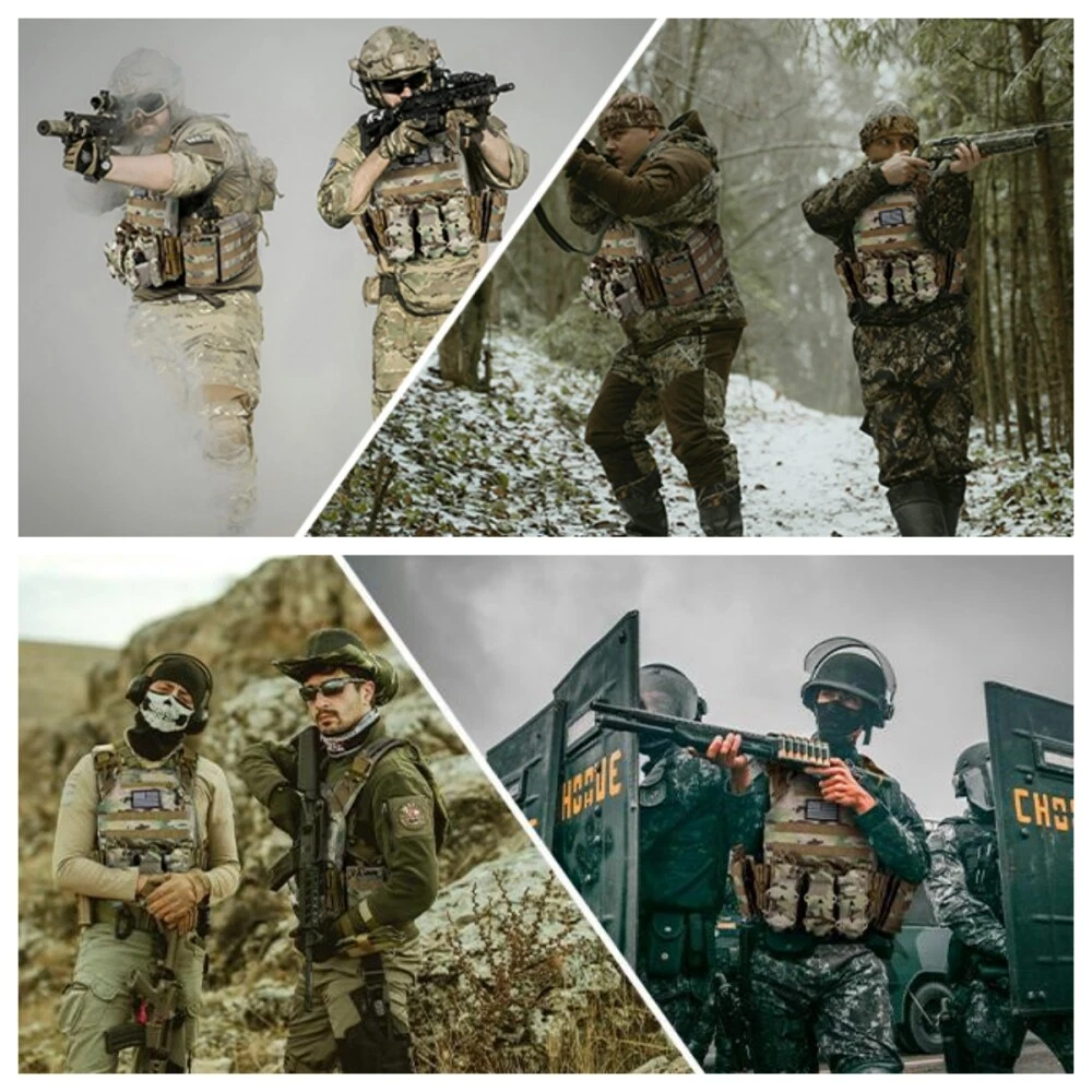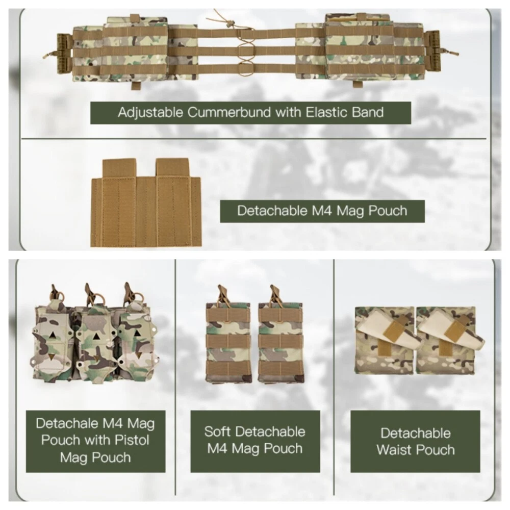 【HIGH QUALITY】 The weight vest composed of 900D fabric, high-tensile strength thread, and webbing is equipped with a map pouch and three modular heavy-duty mag panels.It comes with two stable side straps as well as adjustable padded shoulder straps. The weight vests are fully padded with breathable 3D mesh, which are comfortable and keep you cool by allowing air circulation. 【FUNCTIONAL-RAPID OPEN】 This weight vest is built with rapid-open connectors on the shoulders and waist that make it easy to quickly put it on and take it off. The unique cummerbund features integrated pockets that can even be accessed through the side for added protection in case it's required. The ideal tool for training, hiking, camping, extreme challenges, and fans alike. 【MOLLE SYSTEM】 Throughout the weight vest, there are MOLLE webbing attachment points and optional personalization options. Map pockets with snap-and-hook closures keep important documents within reach, and pockets offer easy access to soft pocket as needed. Shock-cords and cord locks can be hidden in the back of the vest, not only can the waist and size be adjusted, it can also enhance the feeling of comfort. 【 PERFECT SIZE 】 Adjustable shoulder strap and cummerbund fit most people from size S to XXXL size: maximum waist 52 inches, minimum waist 32 inches. Retro kit integrates seamlessly with carriers that use hook-and-loop flap systems to fit different waist sizes. In addition, waist belts and shoulder straps can also achieve the effect you want. 【USE SCENES】 Target for tactical training. Packaging: 1x Tactical Vest , other items not included.