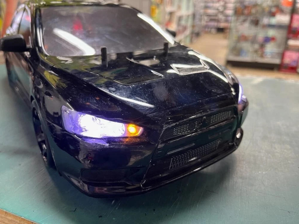 Tamiya 1/10RC TA03F FRP chassis Lancer Evolution X illuminated custom body RC set Tamiya 1/10 Electric RC Car TA03F FRP Chassis Conversion Kit Installed Finished Product Lancer Evolution X Illuminated Custom Body Ready to Run [Product Description] This is a finished product of Tamiya 1/10 electric RC car TA03F. All the mechanisms are installed, and it is ready to run as long as you have a battery. The TA03F chassis has been customized in many ways. Since it was inherited, the details of the manufacturer are unknown, but as far as we know, it has been customized with Tamiya OP306 TA03F FRP chassis conversion set installed, stabilizer, full bearing, quick holder, drift tires, aluminum cover for gears, front bumper, etc. The body is a painted finished product of Mitsubishi Lancer Evolution X, and it is a custom body with LED lights. [Product Specifications] Transmitter: Futaba MJ Megatech Junior 2phka Servo: Futaba S3003 Receiver: Futaba FP-R122JE Amplifier: Futaba MC210CB [Product Condition] [Condition: Acceptable]... Everything shown in the image is included. Operation has been confirmed, and there are no problems with the driving operation or LED light function. Please note that this is a used item and may have some signs of wear such as scratches and dirt. ★Please see before dealings★ 【Payment】 Please complete payment for auction items within 5 days 【 Shipping 】 ※Usually goods will be shipped within 3 business days after payment is received. ※Time of delivery depend on the country or region. ※Package will be send by JAPAN POST OFFICE or YAMATO or Fedex with tracking number. It will be arrived about 1week ~ 3weeks on average after shipping information is provided. International Buyers - Please Note ・ Import duties, taxes and charges are not included in the item price or shipping charges. These charges are the buyer’s responsibility. ・ Please check with your country’s customs office to determine