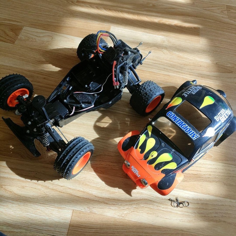 Tamiya Blitzer Beetle. Includes a brushless motor. Brushless amplifier and receiver are not included. Used condition with scratches and dirt, please check the photos for details. I promise fast shipping via FedEx or DHL as soon as possible! Import duties, taxes and charges are not included in the item price or shipping charges. These charges are the buyer’s responsibility. These charges are normally collected by the delivering freight (shipping) company or when you pick the item up - do not confuse them for additional shipping charges.