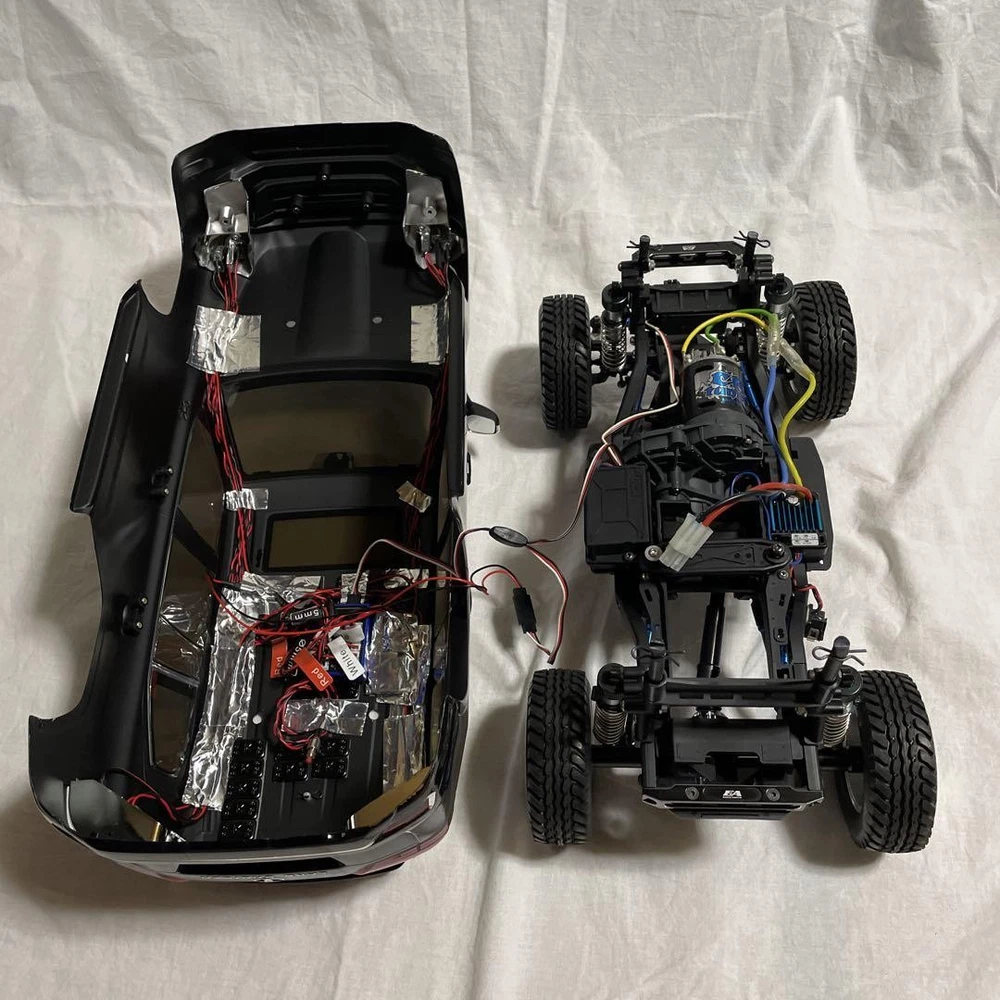 Realistic design Land Cruiser RC car with LED headlights. Color: Black. Comes with a remote control. Light function: LED headlights. Tire type: Off-road tires. The Tamiya CC-02 chassis has some customizations and appears to be in good condition as it was used indoors. The body has some paint peeling in the rear wheel wells due to rubbing against the tires. Customizations include a Tamiya CR tune motor, Tamiya CC-02 aluminum shocks, GPM aluminum link arm set, Eagle front and rear aluminum differential cases (housing), Eagle front and rear aluminum bumpers, and Tamiya Fine Spec 2.4G with receiver (TRU-08). The body post is short. I promise fast shipping via FedEx or DHL as soon as possible! Import duties, taxes and charges are not included in the item price or shipping charges. These charges are the buyer’s responsibility. These charges are normally collected by the delivering freight (shipping) company or when you pick the item up - do not confuse them for additional shipping charges.