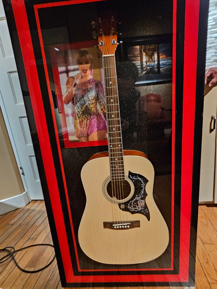Own a piece of music history with this autographed Taylor Swift Ventura guitar. Certified authentic by Superstarcert.com, this guitar is a must-have for any music enthusiast. The signature is verified by Professional Sports (PSA/DNA), ensuring its authenticity. This original piece is a unique addition to any collection. Perfect for fans of Taylor Swift or anyone who appreciates music memorabilia.