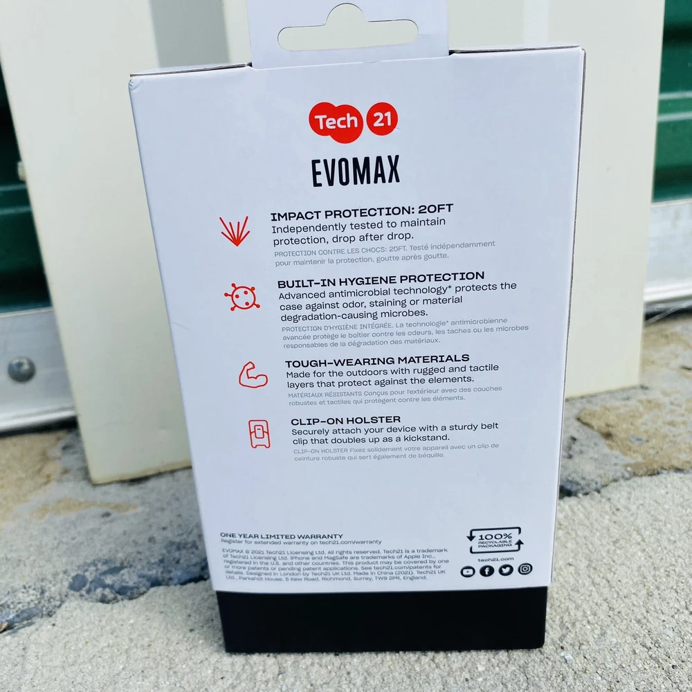 This Tech21 iPhone 13 Pro Max EvoMax case offers 20ft multi-drop protection and comes with a convenient holster. The glossy black design showcases the sleek lines of your phone while the antimicrobial and anti-scratch features ensure long-lasting protection. Made from a blend of TPU, PC, and FlexShock materials, this case is both durable and lightweight. Designed specifically for Apple products, this hard case is compatible with the iPhone 13 Pro Max and is easy to install. The case features a unit type of ft and is perfect for those who are always on the go. With its stylish design and practical features, this Tech21 case is the perfect addition to your phone accessories.