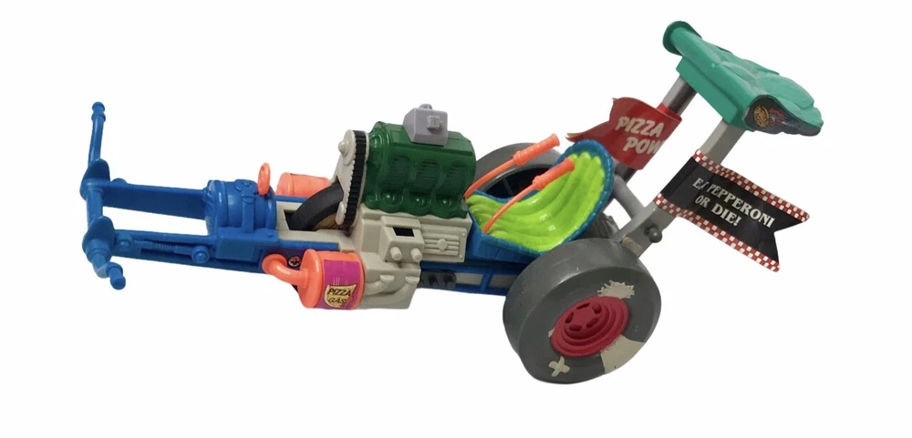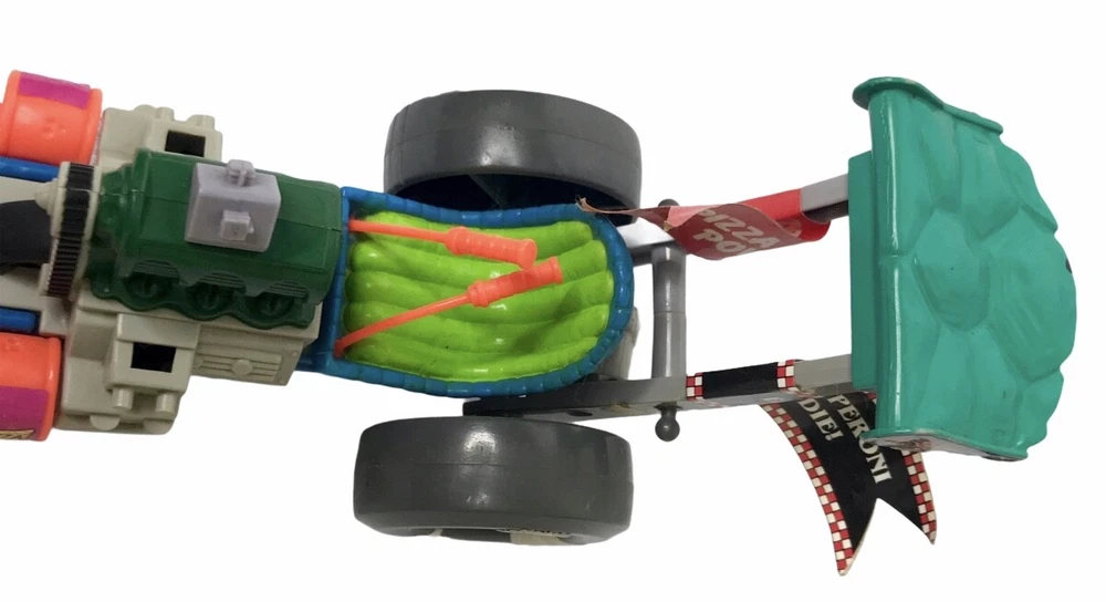 Teenage Mutant Ninja Turtles (TMNT) Sewer Dragster Pizza Powered Vehicle 1990 Playmates Condition: Loose from Package. For the loose figure grade ranging from C-10-C-1. Figure grade (C-5) - Good. Ripcord is missing.