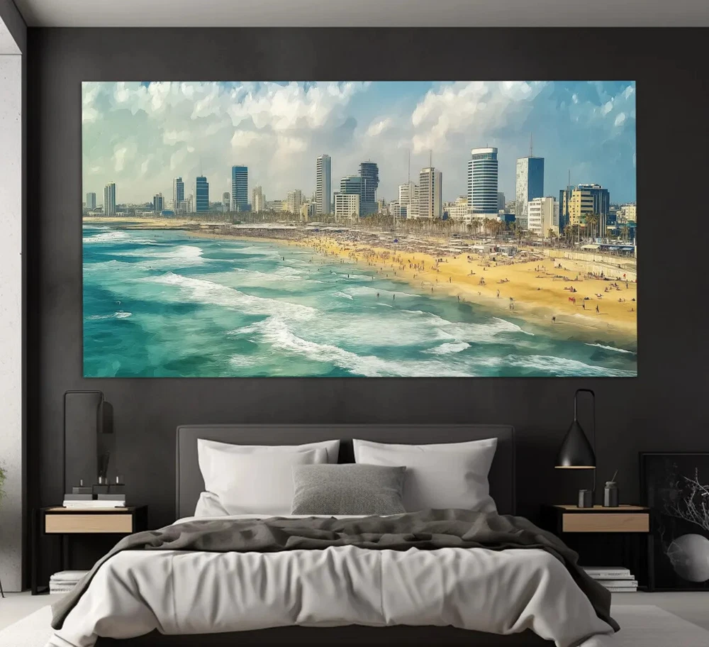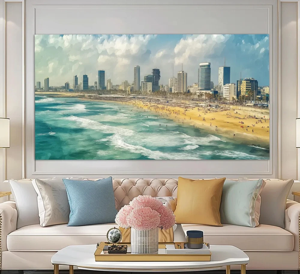 Tel Aviv Vintage Oil Painting Israel Unframed Canvas Print Australian Wall Art