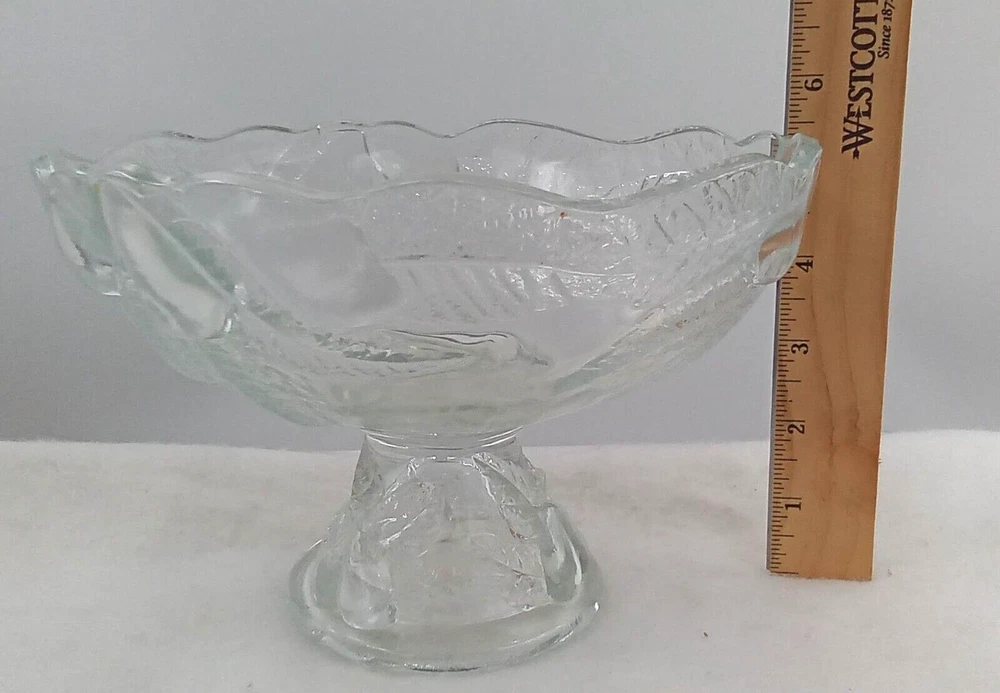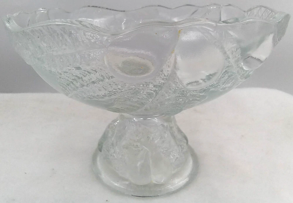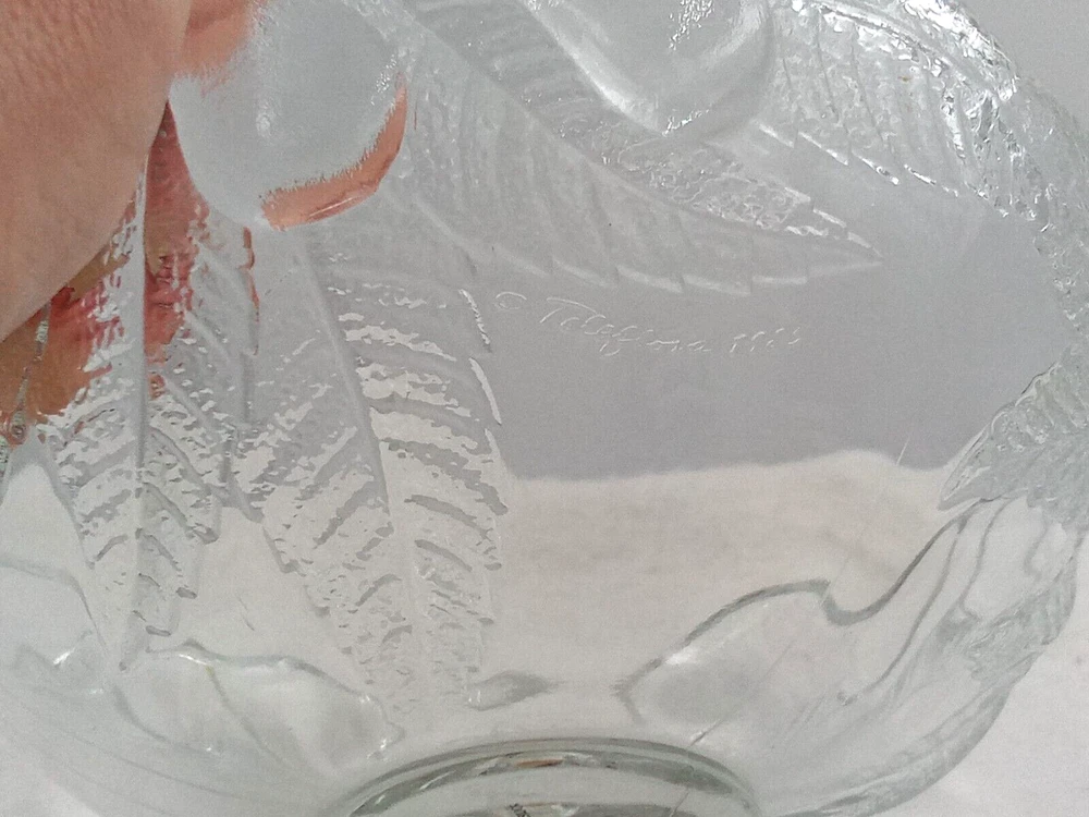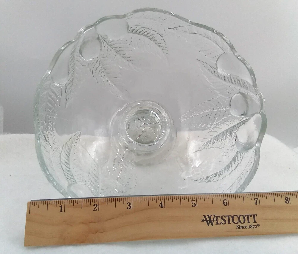 Occasion: All Occasions gtin13: Does not apply Theme: Food/Kitchen, Food & Drink, Garden Personalize: No Type: Fruit Bowl Year Manufactured: 1985 Features: Decorative Brand: Teleflora Style: Art Deco Material: Glass Color: Clear Country/Region of Manufacture: France Department: Adult Shape: Round Pattern: Fruit Original/Reproduction: Original UPC: Does not apply Finish: Shiny