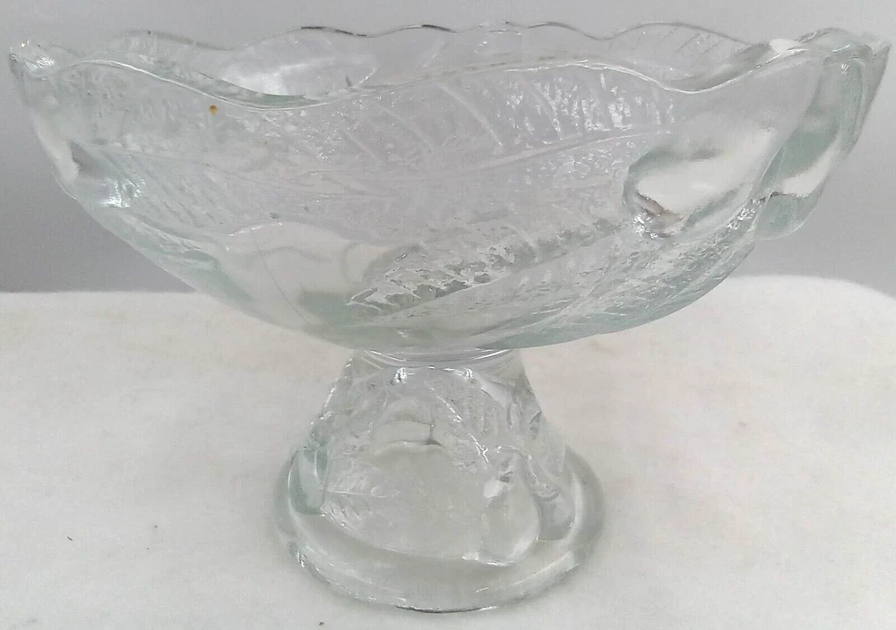 Teleflora Pedestal Glass Bowl Crystal Round Fruit Pear Leaf France 1985 Vintage