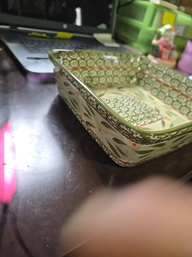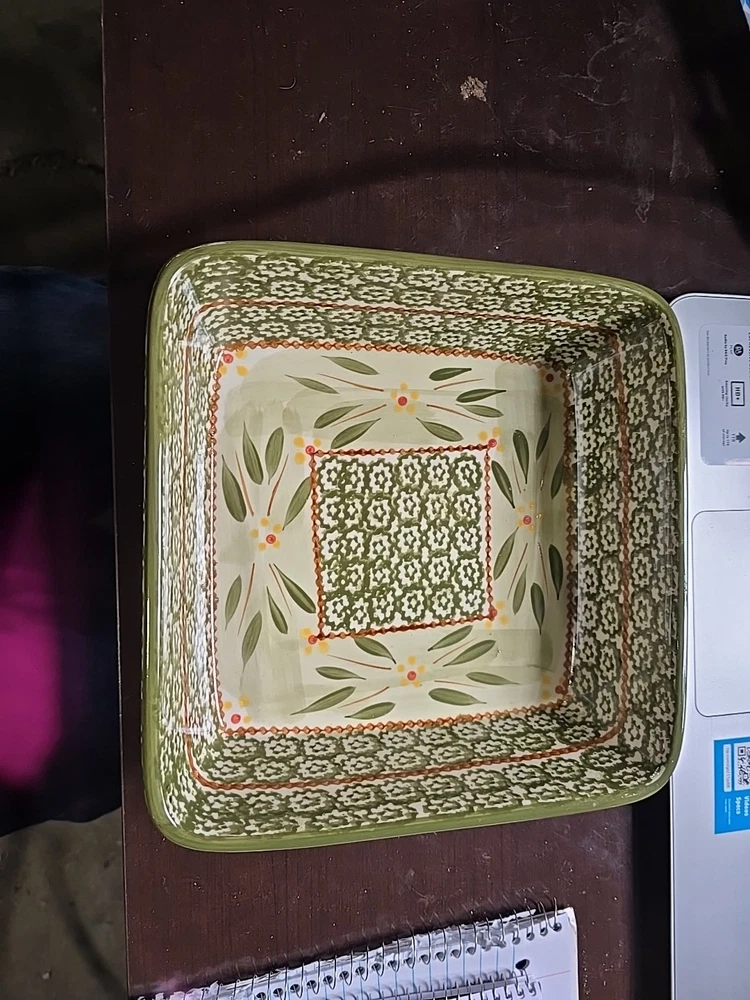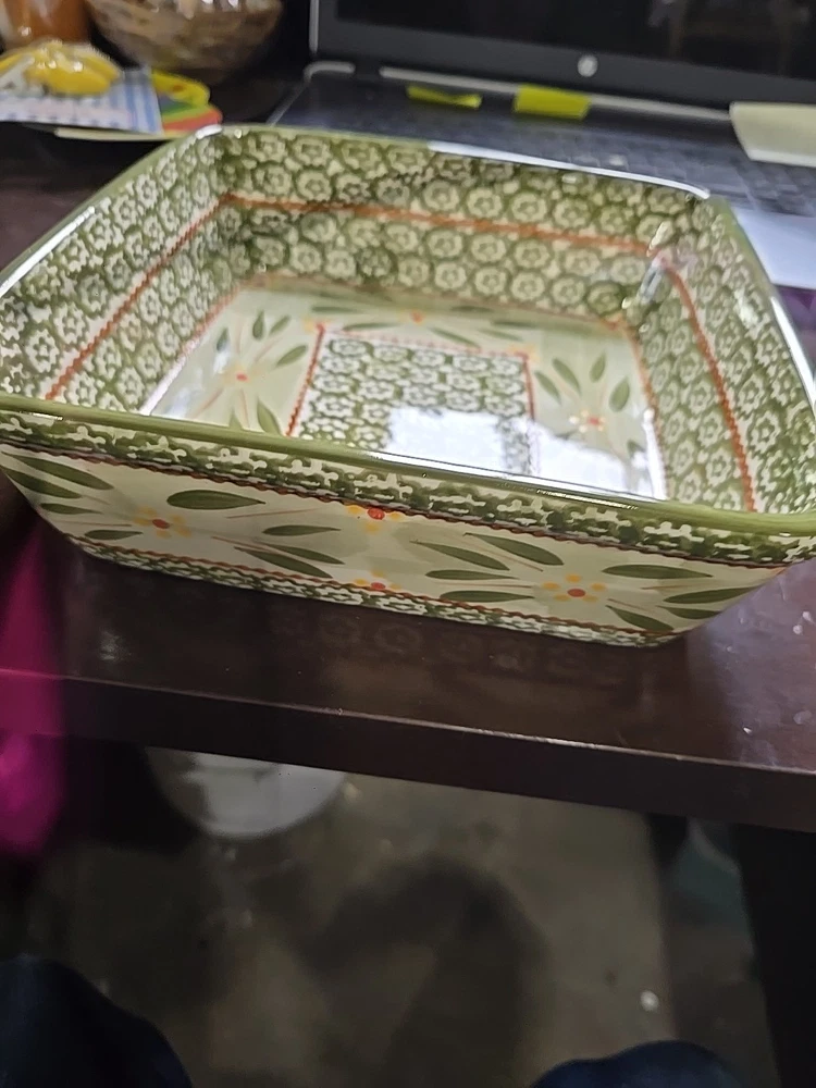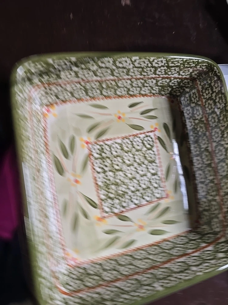 The Temptations 2 QT Square Baking Dish set includes a baking dish, rack, trivet, and lid in an Old World design. Made of ceramic in a green color, this set is oven-safe for both electric and gas ovens. With a capacity of 2 quarts, the square baking dish measures 9.25 inches in length, 8.25 inches in width, and 3 inches in depth. It is dishwasher safe, microwaveable, and can withstand high heat, making it a versatile and convenient addition to your kitchen.