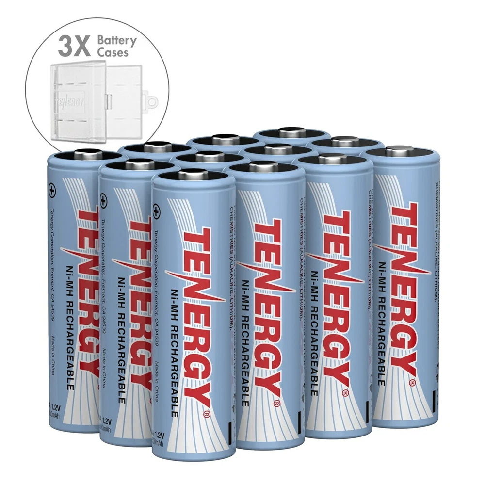 WELCOME TO THE OFFICIAL TENERGY EBAY STORE BATTERIES Standard Rechargeable Batteries AA AAA C D 9V Combos/Kits ALL NICD (AA, C, D, & SUB C) Standard Lithium Rechargeables 18650/14500 CR123A (164340) 9V SIZE Standard LiFe Batteries SLA (Sealed Lead Acid) Non-Rechargeable / Primary Akaline (AA, AAA, C, D, 9V) Lithium CR123A, CR2, 1/2 AA Button Cells Tech / Single Cells (ALL) NIMH | Sub C, A/AF, F, more NICD | Sub C, AA,C, more Li-Ion Single Cells Li-PO Single Cells LiFe Single Cells Hobby Batteries Airsoft RC Cars Drones, Planes, Heli's For Products Power Tools Roomba Batteries Solar Garden Lights BATTERY PACKS Li-Ion Packs NiMH Packs Airsoft RC Cars Drones, Planes, Heli's CHARGERS For Standard Batteries For 18650 & RCR123A For Battery Packs NiMH/NiCD Packs Li-Ion/LiPO Packs LiFe Packs TOYS Quadcopters/Drones STEM HOME/ELECTRONICS LED Lighting Bluetooth Mobile Accessories Combo: Tenergy AA 2500mAh / AAA 1000mAh NiMH Rechargeable Batteries Cells Ni-MH Lot REPLACE STANDARD BATTERIES - These NiMH rechargeable batteries measure 50.5mm (length) x 14.5mm (diameter) for AA and 44.5mm (length) x 10.5mm(diameter) for AAA. MONEY SAVING & ECO FRIENDLY - Tenergy NiMH batteries can be recharged up to 1000 times. You are also diminishing the carbon footprint by limiting the waste caused by disposable batteries. Switch over. Save. Reuse. Recharge with Tenergy. EVERYDAY USE - Our ideal rechargeable high capacity replacement AA/AAA cell is ideal for high/low draining electronic items. Use it in all your household everyday devices such as LED lights, flashlights, solar lights, night lights, calculators, remotes, controllers, cordless phones, RC toys, headlights, garden lights, headsets, alarm-clocks and many more. PERFORMANCE LASTING - At a battery capacity of 2500mAh for AA and 1000mAh for AAA, Tenergy rechargeable 1.2V NiMH battery keeps your devices running longer. NO MEMORY EFFECT - With no memory effect on our rechargeable AA/AAA NiMH batteries, charge your batteries anytime. Even when they are close to full or partially drained you won't have to worry about long term memory effects and will still get the full capacity each use. How to choose correct size and quantity: Step 1: Choose battery size. Step 2: Select quantity: 4, 8, 12, 24, 60 or 120-pack Product Description Features And Benefits: REPLACE STANDARD BATTERIES - These NiMH rechargeable batteries measure 50.5mm (length) x 14.5mm (diameter) for AA and 44.5mm (length) x 10.5mm(diameter) for AAA. MONEY SAVING & ECO FRIENDLY - Tenergy NiMH batteries can be recharged up to 1000 times. You are also diminishing the carbon footprint by limiting the waste caused by disposable batteries. Switch over. Save. Reuse. Recharge with Tenergy. EVERYDAY USE - Our ideal rechargeable high capacity replacement AA/AAA cell is ideal for high/low draining electronic items. Use it in all your household everyday devices such as LED lights, flashlights, solar lights, night lights, calculators, remotes, controllers, cordless phones, RC toys, headlights, garden lights, headsets, alarm-clocks and many more. PERFORMANCE LASTING - At a battery capacity of 2500mAh for AA and 1000mAh for AAA, Tenergy rechargeable 1.2V NiMH battery keeps your devices running longer so that it doesn't fail you when you need it most. NO MEMORY EFFECT - With no memory effect on our rechargeable AA/AAA NiMH batteries, charge your batteries anytime. Even when they are close to full or partially drained you won't have to worry about long term memory effects and will still get the full capacity each use. Specifications Size: AA Voltage: 1.2V Weight: 26.5g Capacity: 2500mAh Dimensions: 50.5mm x 14.5mm Size: AAA Voltage: 1.2V Weight: 13g Capacity: 1000mAh Dimensions: 45.5mm x 10.5mm See Compatible Charger Recommendations: Tenergy 01474 Tenergy 01162 Tenergy 01160 Tenergy 01438 Compatible Chemistry NiMH & NiCD NiMH & NiCD NiMH & NiCD NiMH & NiCD Charging Slots 4 8 12 16 Charging Rate AA & AAA: 450mA per hour AA: 500mA per hour AAA: 250mA per hour AA: 500mA per hour AAA: 250mA per hour AA:500mA per hour AAA: 250mA per hour Display LCD LCD LCD LCD Powered By USB AC Wall Adapter Car Adapter AC Wall Adapter AC Wall Adapter Car Adapter *Note: charger recommendations above are some options from Tenergy. This battery can be used with any other branded chargers as long as it supports NiMH batteries. Extend Your NiMH Battery Life With The Following Practices Do not over-charge the battery, remove the battery from charger when you are done recharging. Heat lowers battery life, do not charge or discharge the battery when it's hot. Always let the batteries cool down to room temp before using it/charging it. Do not store the battery with low voltage, recharge after each use to avoid over-discharge. Always store the battery in a dry and cool place, never expose it to heat or direct sunlight. Recharge the battery once every 6-months, if they will be unused or stored long term.