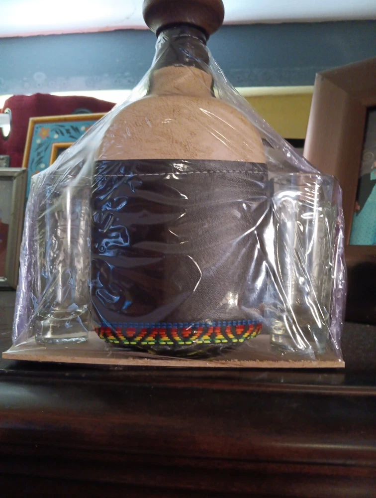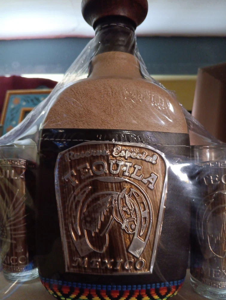 This stunning tequila decanter is a must-have for any collector or lover of fine barware. Crafted in Jalisco, Mexico, this decanter is made with the highest quality materials and features a unique design that is sure to impress. With its sleek lines and elegant shape, this decanter is perfect for displaying on a shelf or using to store your favorite tequila or other liquors. Whether you're a collector or just looking for a beautiful piece to add to your barware collection, this tequila decanter is sure to impress.