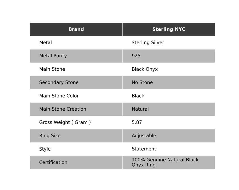 Welcome to Sterling NYC Anniversary Gift For Her Natural Black Onyx Statement Adjustable Ring 925 Silver Handmade Ring, Sterling Silver Ring, Black Onyx Ring, Handcrafted Ring Specifications:- SKU : JS-56622 Gemstone : Black Onyx Stone Shape : As Seen In Picture Metal Purity : 925 Sterling Silver Ring Size : Adjustable US Adjustable : Yes ----------------------------------------------------------------------------------------------------- Experience the timeless allure of silver jewelry, a cherished choice known for its exceptional properties and countless rewards. Explore the captivating charm of its unique attributes, enveloping you with elegance and remarkable healing qualities. Immerse yourself in the enigmatic world of silver, where beauty and benefits harmoniously intertwine. Benefits: Embrace the Elegance : Silver jewelry seamlessly blends accessible luxury with timeless beauty, elevating any jewelry collection without the need for extravagant spending. A Mindful Companion : Adorn yourself with silver jewelry as a gentle nudge towards mindfulness, a tangible reminder to cherish the beauty of every moment. Amplify Positivity : Silver, known for its energy-conducting qualities, is thought to enhance the power of positive intentions and affirmations, aiding in the clear manifestation of your desires. Unleash Self-Expression : Silver jewelry, with its versatile designs, empowers individuals to express their unique style, allowing their personality to shine through every piece. Soothing Serenity : Silver's cooling properties are believed to have a therapeutic effect, bestowing a sense of relief and tranquility upon both body and mind. ----------------------------------------------------------------------------------------------------- For Mother's Day Gift For Father's Day Gift For Promise For Valentine' Day For Halloween Party For Christmas Day Gift For New Year Party For Mom For Her ----------------------------------------------------------------------------------------------------- Discover the impeccable designs tailored just for you, and receive personalized guidance by reaching out to us. Our skilled artisans meticulously handcraft each piece in our workshop, infusing them with love and unwavering attention to detail. Your visit holds immense significance to us, and we are committed to ensuring that your shopping experience is nothing short of exceptional. Thank you for choosing us; we sincerely hope you thoroughly enjoy your shopping journey. Happy shopping! ----------------------------------------------------------------------------------------------------- At SterlingNYC, exquisite craftsmanship meets premium sterling silver gemstone jewelry. Our handcrafted pieces reflect authenticity and uniqueness, a testament to our commitment to excellence. Explore our collection and create your own dazzling jewelry ensemble.