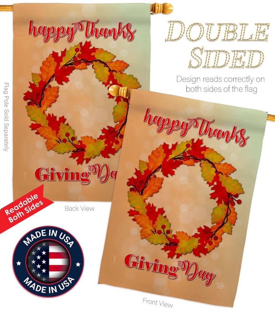 Thanksgiving Beautiful Matching Large House Mini Garden Flags SetOrnament Collection have variety of Flags Set for all occasions. Uniquely design for hanging indoor or outdoor use. We are committed to offering you exceptional values. Our customers enjoy displaying our Flags Set for longer periods. Specification: Theme: Thanksgiving Size: House 28" X 40" Size: Garden 13" X 18.5" Print: Double-Sided Readable: Readable Both Sides Material: Weather Resistant 3 Layers Blockout Stitching: Double Stitched Display: Vertical Hang Type: Sleeve Artist: © Ness Green Special Features: Origin: Made In USA 92138Package Include: 1 pc x Large House 28" X 40" 1 pc x Mini Garden 13" X 18.5"For more than a decade, we’ve been dedicated to manufacturing flags with no comparison in quality and beautiful designs. Our flags are made with our Guard material that is soft to the touch and designs can be read correctly on the flag. A feature that our customers will love. We are committed to using eco-friendly inks that won’t leave a foot print in our environment. MPN: OC-TG-S-192138-IP-BO-D-US18-OC 92138 92138 PROUDLY Made In USA - Package And Product Designed In California PURCHASE WITH CONFIDENCE - From 's US Authorized Resellers MADE OF DURABLE -100% Thick Polyester Fabric construction helps resist the wear and tear from frequent use TEXT READABLE BOTH SIDES - Flags Set Double-Sided Print DURABLE FLAG - Double stitching panels on multiple rows and high quality Sleeve to provide lasting strength