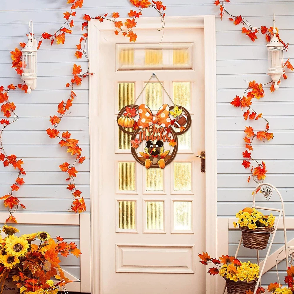 Thanksgiving Turkey Door Sign Mouse Shaped, Give Thanks Wooden Maple Leaves Pumpkin Hanging Decor for Front Door, Fall Wood Wreath Wall Decor for Autumn Harvest Home Decorations Product Details Color: Give Thanks Turkey Brand: Sionoiur Material: Wood Mounting Type: Door Mount Manufacturer: Sionoiur Product Dimensions: 13 x 11.4 x 0.04 inches Item Weight: 4.6 ounces Manufacturer: Sionoiur Country of Origin: China Item model number: MP-09601 Date First Available: August 22, 2024 What You Will Get: The package comes with 1 piece of wooden turkey door sign. Size:33*29cm (13*11.4inches), offering a substantial size for impactful decorative display. Crafted with vibrant colors and intricate details, this decorative piece is sure to bring a touch of autumn warmth to your entryway. Hang it on your front door or porch to greet guests with a delightful autumnal display. Premium Material: Crafted from high-quality wood with intricate laser-cut detailing for long-lasting use year after year. This lightweight sign is easy to hang and adds a whimsical touch to your fall decor. The vibrant colors and intricate details are sure to catch the eye of passersby and add a touch of festive flair to your autumn decor. Suitable for indoor and outdoor hanging. Unique Design: This Thanksgiving turkey door sign features a whimsical mouse character surrounded by fall foliage, pumpkins, and a football. The wooden plaque bears the heartwarming message 'Give Thanks', reminding you and your guests of the true essence of the holiday. Easy to Display: Includes a jute rope hanger for convenient wall or door mounting, adding a touch of rustic charm. Can be hung on doors, walls, or used as a wreath or yard decoration. This hanging sign will make a great addition to your Thanksgiving party. Decoration Scenes: Suitable for both indoor and outdoor use, adding a touch of fall whimsy to your home. Hanging it on the front door, back door, room door, yard, wall position near the entrance, even can use it in cafe and restaurant, office and business to greet guests. Eye-catching Thanksgiving Decorations This charming Thanksgiving door sign is the perfect way to welcome guests and spread holiday cheer! Crafted from high- quality wood, it features a delightful image of a turkey surrounded by fall leaves, a pumpkin, and a football. The vibrant colors and intricate details bring the festive scene to life. Product Details Material: Thick solid wood Color: As shown in the picture Size: Approx 13x11.4inches (33x29cm) Package Including: 1 x turkey hanging sign Premium Material Crafted from high-quality wood, this sign measures approximately 13x11.4inches, this lightweight sign is easy to hang and adds a whimsical touch to your fall decor. The vibrant colors and intricate details are sure to catch the eye of passersby and add a touch of festive flair to your autumn decor. Seasonal Hanging Decor This wood Thanksgiving Day sign is made of thick wood material, so it is durable to use and not easy to break. Whether you're celebrating harvest or simply embracing the cozy ambiance of autumn, this delightful door sign is a must-have for any home. Versatile Display Hang this delightful piece on your front door, wall, or anywhere in your home to add a touch of rustic warmth and autumnal charm. With its eye-catching design and meaningful sentiment, this Thanksgiving door sign is sure to become a cherished part of your seasonal decorations for years to come. Suitable to hang on the indoor and outdoor , porch, entryway, above the fireplace, and so on.