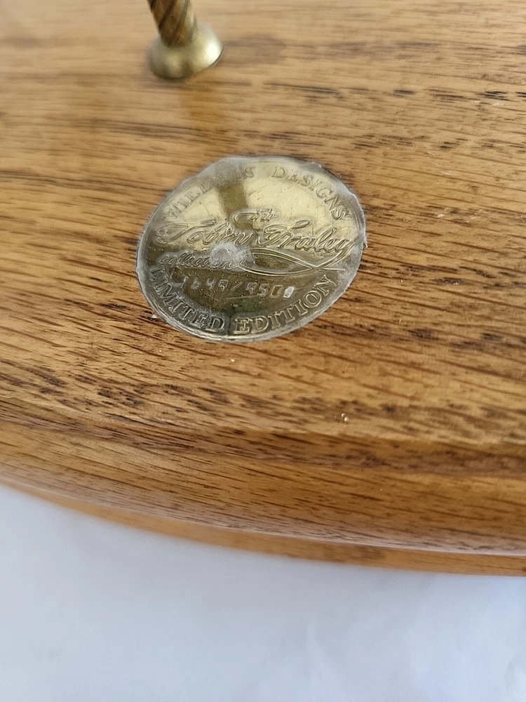 This exquisite music box features the stunning design of Tobin Fraley and Willitts. Made in Taiwan, it is crafted from a mix of high-quality ceramic and porcelain materials, ensuring its durability and longevity. The box is beautifully decorated with multi-color patterns that showcase the American style. This collectible item is perfect for those who appreciate unique and beautiful designs. It comes with a brand certificate and is numbered 134 out of 8500. Add this Tobin Fraley music box to your collection and enjoy its soothing sound and delicate design.