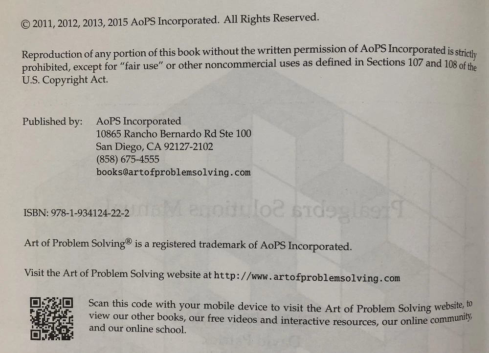 -The Art of Problem Solving Pre Algebra Solutions Manual -This is a used book in overall good condition: -Pages appear clean and unmarked -Cover shows various signs of wear -See pictures for details -If you decide to purchase this book, feel free to leave feedback or a review! We are a small business and any feedback helps -Be sure to check out our other listings for more used homeschool books!
