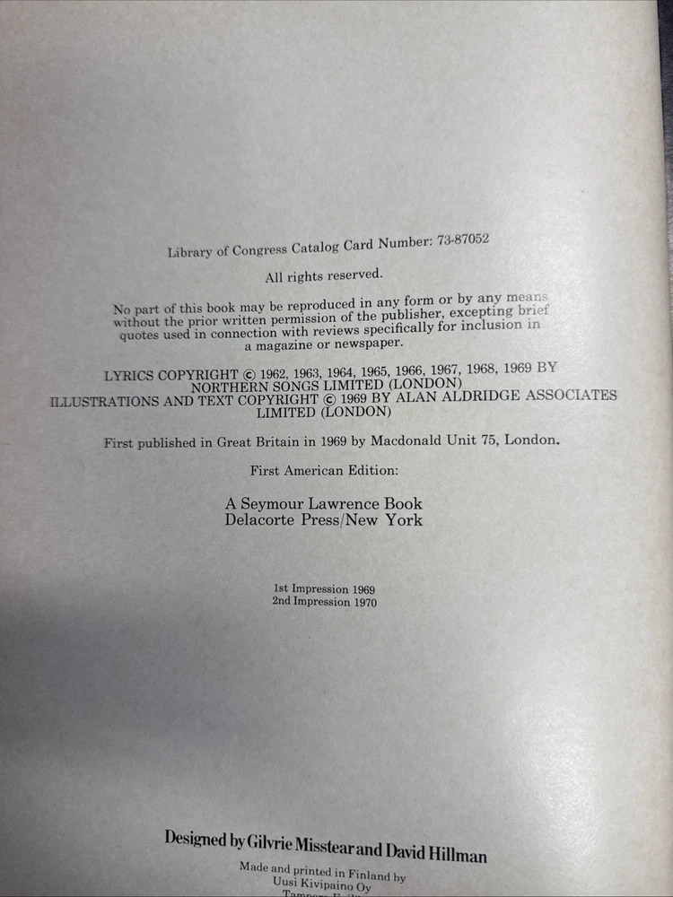 Publishing Co.:A seymore Lawrence Book Delacorte Press/New YorkIndustry:MusicOriginal/Reproduction:OriginalCountry/Region of Manufacture:United StatesArtist/Band:BeatlesGenre:Rock & Pop