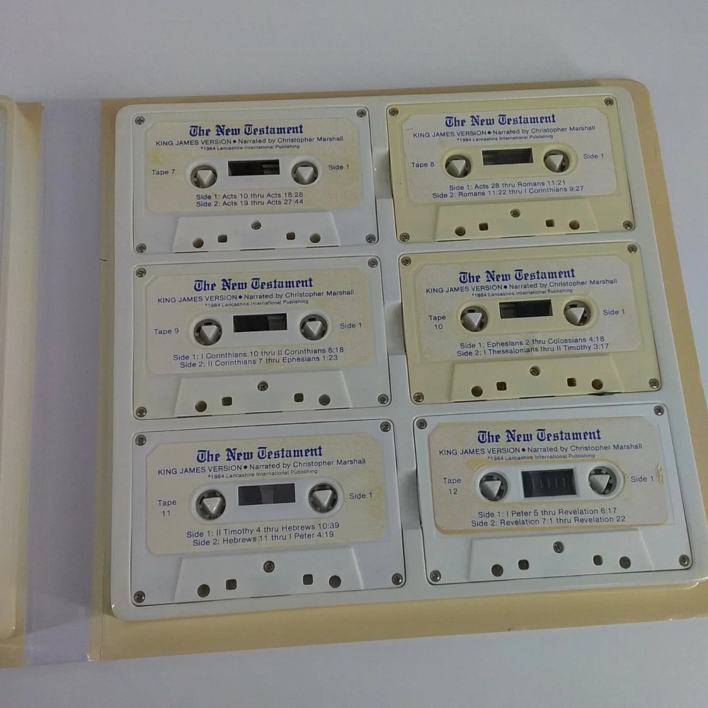 The Holy Bible on Cassette New Testament 12 Tapes 1984 King James Version.