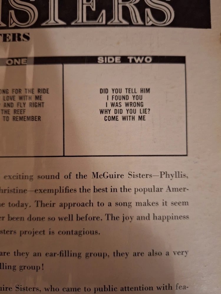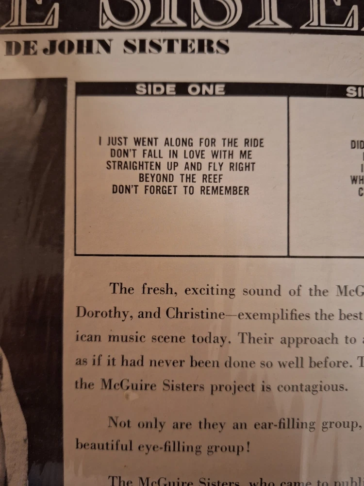 HomeThe Mcguire Sisters with The De John sisters Vinyl LP Coronet 1964 Open Shrink