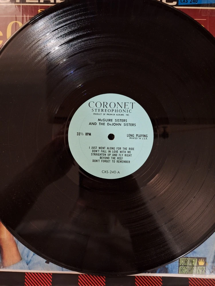 Record Label:Coronet RecordsRelease Year:1964Sleeve Grading:Very Good Plus (VG+)Seller Notes:“Plays Well”Format:RecordMaterial:VinylRecord Size:12"Release Title:The McGuire Sisters With The DeJohn SistersCase Type:Cardboard SleeveRecord Grading:Very Good Plus (VG+)Artist:The McGuire SistersType:LPColor:BlackSpeed:33 RPM