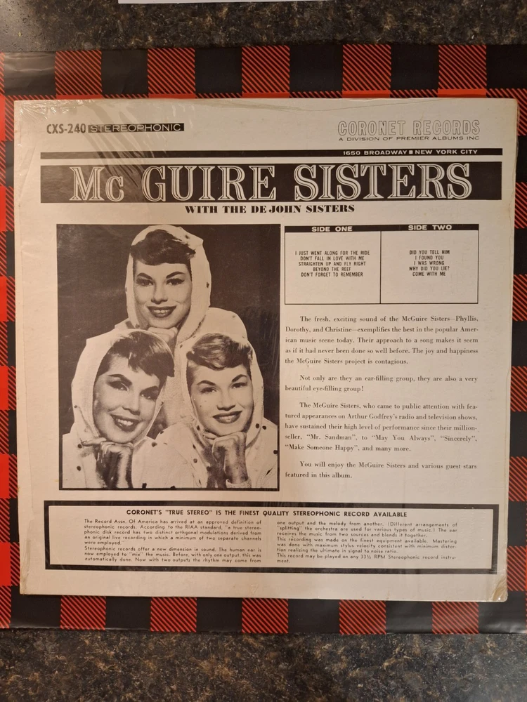 The Mcguire Sisters with The De John sisters Vinyl LP Coronet 1964 Open Shrink