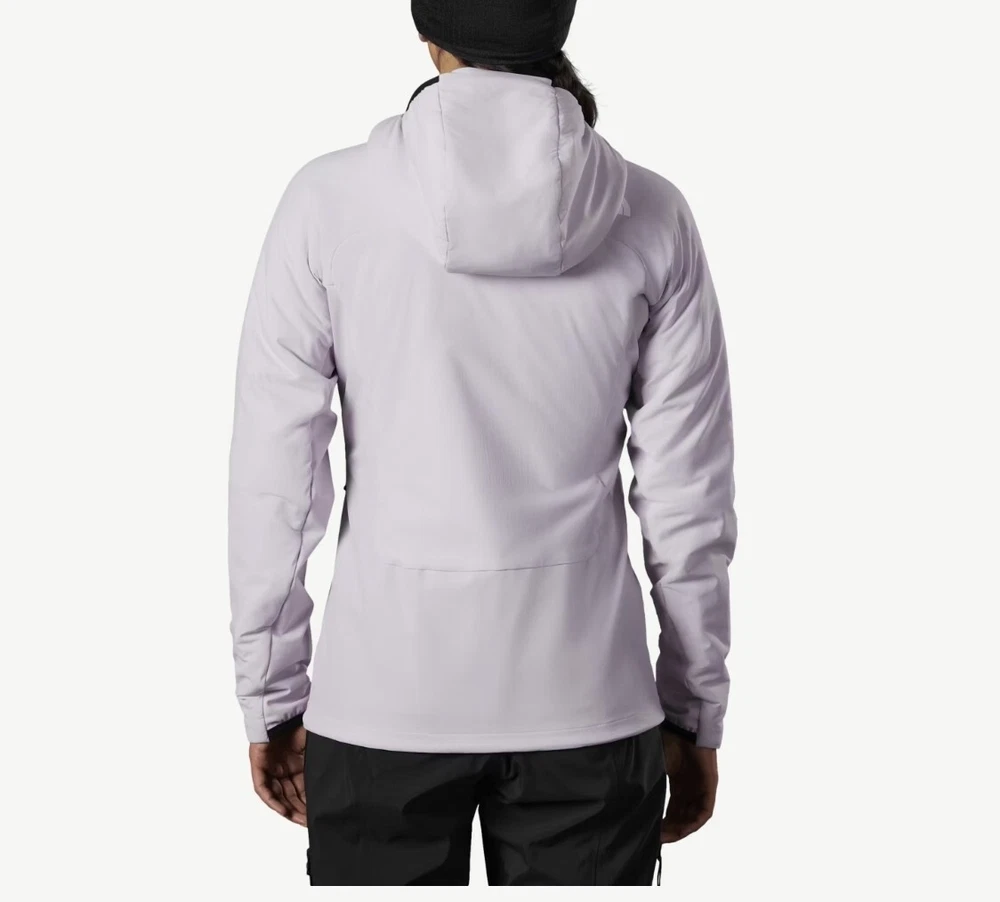 The North Face NWT Women’s Summit Series Casaval Hybrid Hoodie SzXL London Fog The North Face Women's Summit Casaval Hybrid Hoodie is a breathable and versatile mid layer that is optimized for mobility. It features 60 g Ventrix stretch synthetic insulation in the body and 40 g in the hood, which is perforated throughout the back panel for dynamic venting. The high-CFM body fabric allows for breathability during high-output activities, while the hybrid construction with stretch-woven underarms and hem provides mobility and comfort. The attached, helmet-compatible hood has a pre-tensioned elastic opening and rear adjustment, making it easy to wear with your gear. Key Features: • 60 g Ventrix stretch synthetic insulation in body, 40 g in hood; perforated throughout the back panel for dynamic venting • High-CFM body fabric allows for breathability during high-output activities • Hybrid construction with stretch-woven underarms and hem for mobility and comfort • Attached, helmet-compatible hood with a pre-tensioned elastic opening and rear adjustment • Exposed, water-resistant, reverse-coil center front zip with an internal kissing welt finish Product Specs Size-XL Gender-Women's Age Group-Adult Color-Lavender Fog Best use-Snowsports, Snowboarding, Downhill skiing Features-Water resistant, Breathable, Insulated, Zippered pocket, Lightweight Material-Polyester/Polyester blend, Elastane, Nylon/Nylon blend Featured technology-DWR Style-Long sleeve, Hoodie, Full-Zip Insulation type-Synthetic Model year-2024 Fabric-40D 91 g/m² 88% nylon, 12% elastane plain weave with non-PFC durable water-repellent (non-PFC DWR) finish Back length-Hip-length Back length-(in)26.5" Responsibility-Recycled/repurposed Insulation-60g Ventrix 80% recycled polyester, 20% polyester stretch synthetic insulation in body; 40g in hood Insulation weight-(g)60 Sleeve length style-Long Warranty-Limited Lifetime