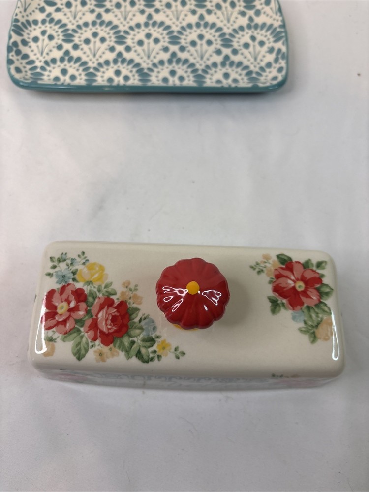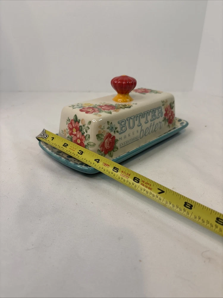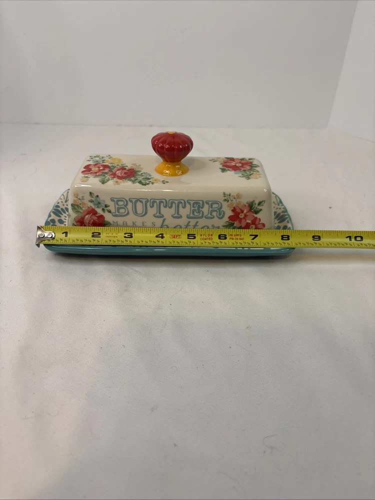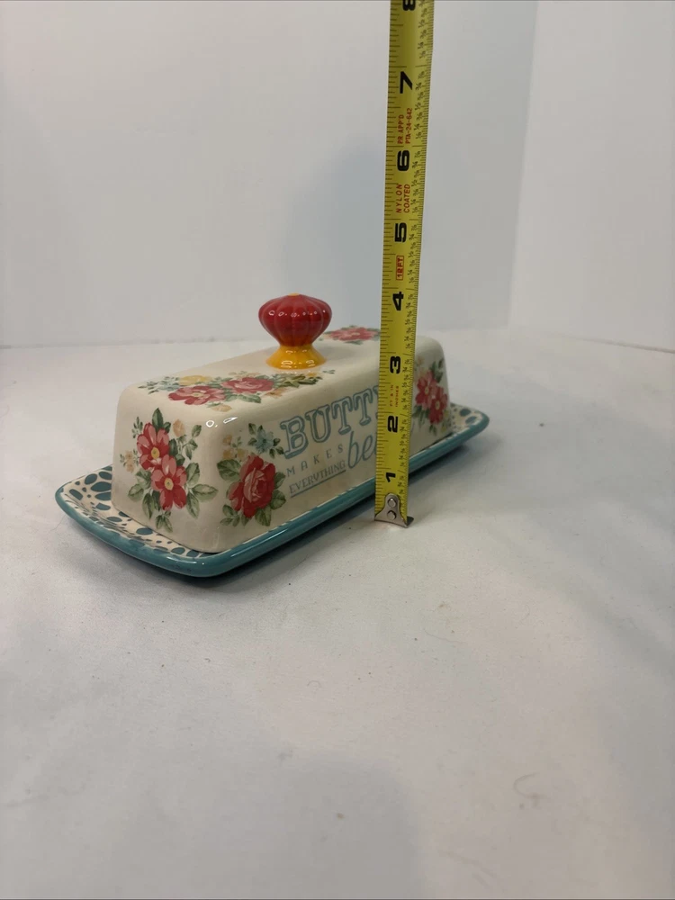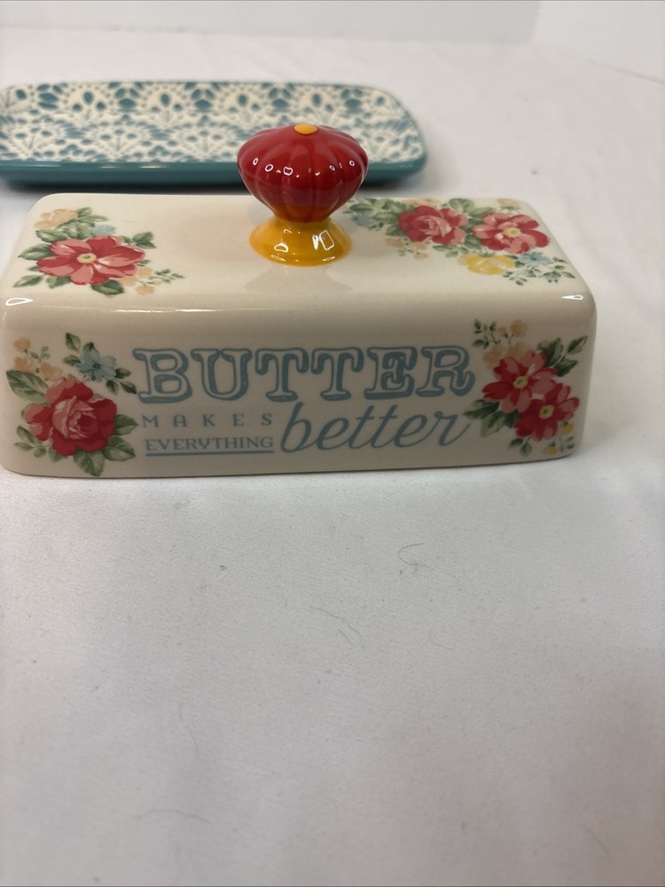 The Pioneer Woman Floral Butter Makes Everything Better Butter Dish Set. Condition is Used. Shipped with USPS Ground Advantage.