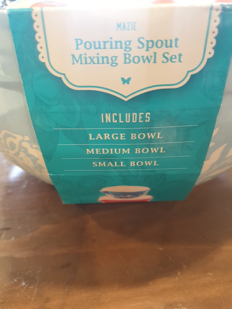 The Pioneer Woman Mazie Collection 3-Piece Nesting Mixing Bowl Set with Pour Spout – Stylish and Functional Batter Bowls for Baking and Prep – Vibrant Floral Design – Durable and Easy to Clean